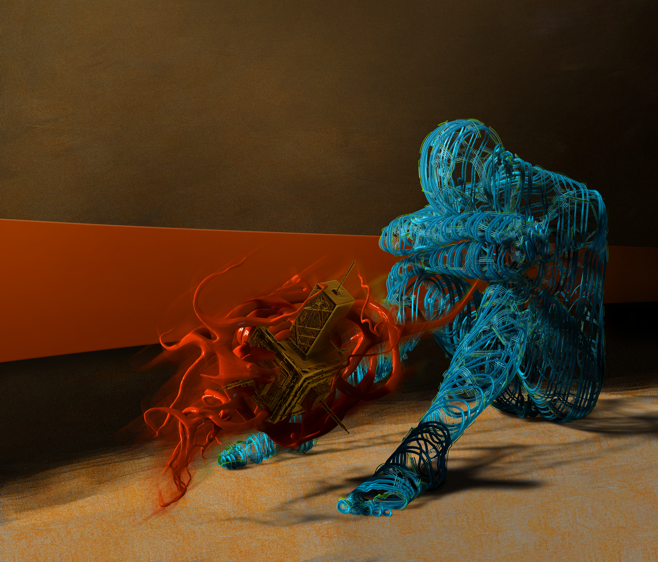 Me alegro te gusten ¡herrero20. Ci-fi no sé, pero creo que algo de fantástico-onírico tengo. Aquí te muestro una escena construida con varias fotografías hechas por mi (menos el hombre que manipule, sacado de no sé dónde), si hasta los clavos también, espero te guste (os guste), he empezado a hacer mis primeros pinitos con 3d, cuando tenga un poco de soltura quiero meterme con una escena de este tipo, igual esta misma, pero como digo en 3d (me está atrayendo mucho el tema, pero aún soy un novato). Un saludo.