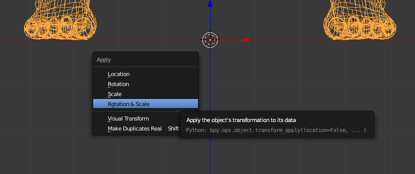 Y para finalizar, hacer una aplicación de escala, con Ctrl+A > Rotation & Scale.