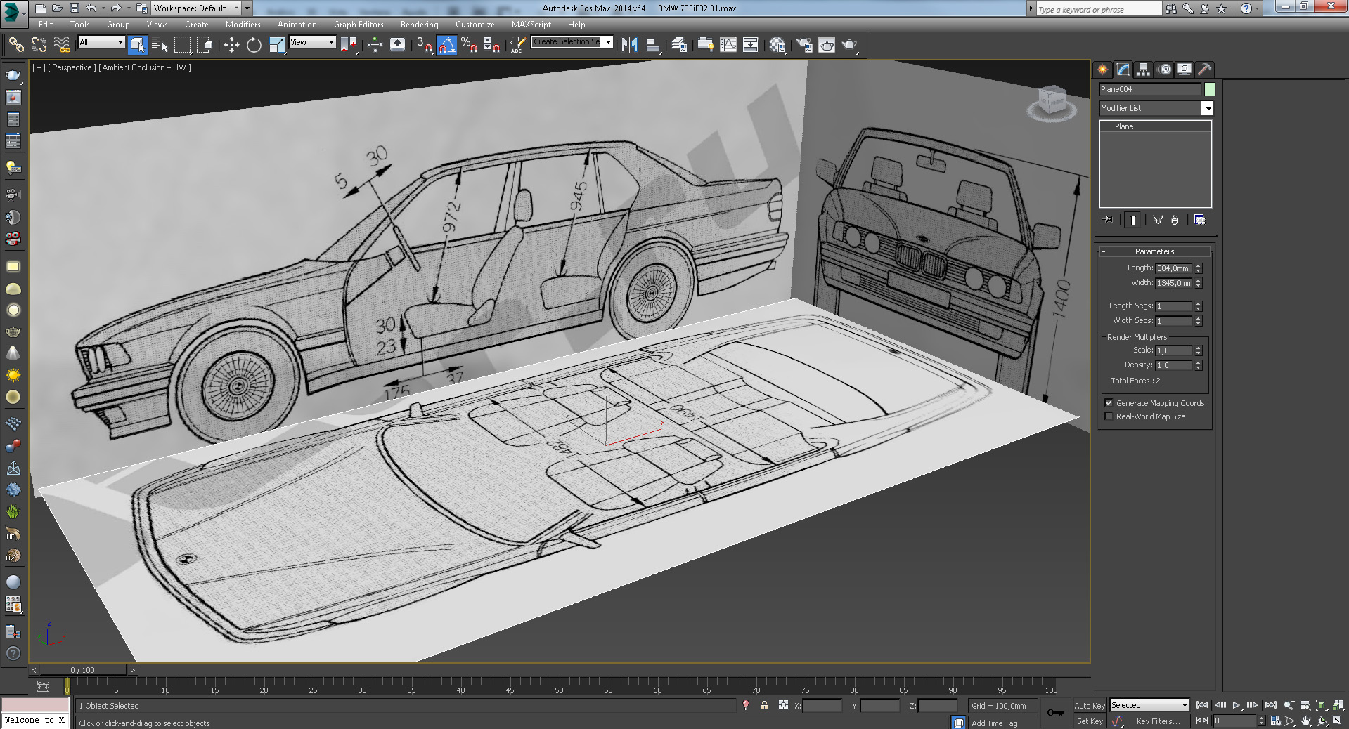 Como todo proyecto 3d, comienza con las vistas principales, es importante tener unos buenos Blueprints y asegurarse de que cumplen con las dimensiones reales proporcionadas por el fabricante.