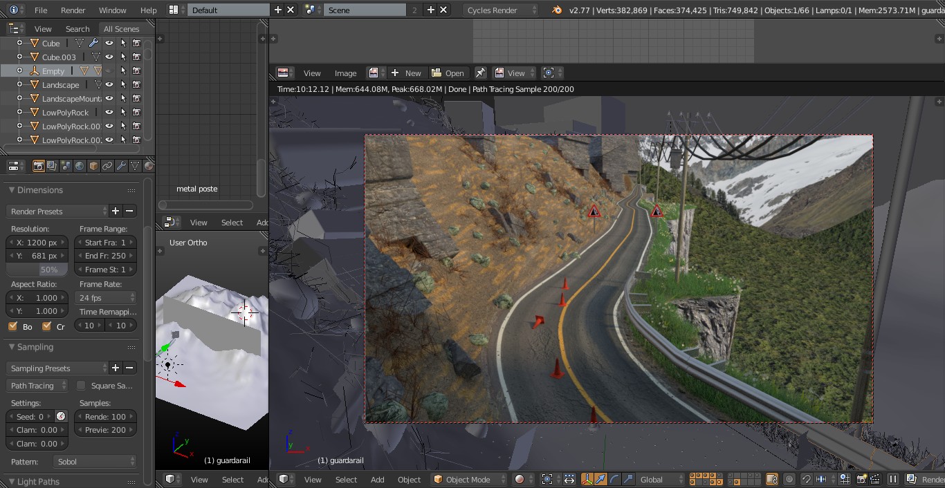 Bueno por aquí de nuevo con otro trabajo. No le he podido sacar mejor resolución y samples en este momento, pero se ven las intenciones. Me quedan árboles que poner y un montón de arreglos (no hay brillos y rugosidad por ahora). A ver que tal le parece a la gente del 3d; que molan los comentarios y alguna que otra bofetada. Saludos.