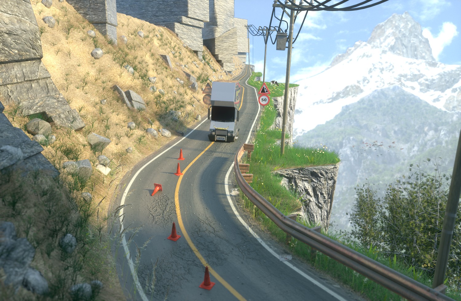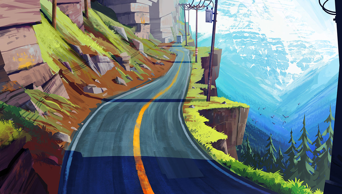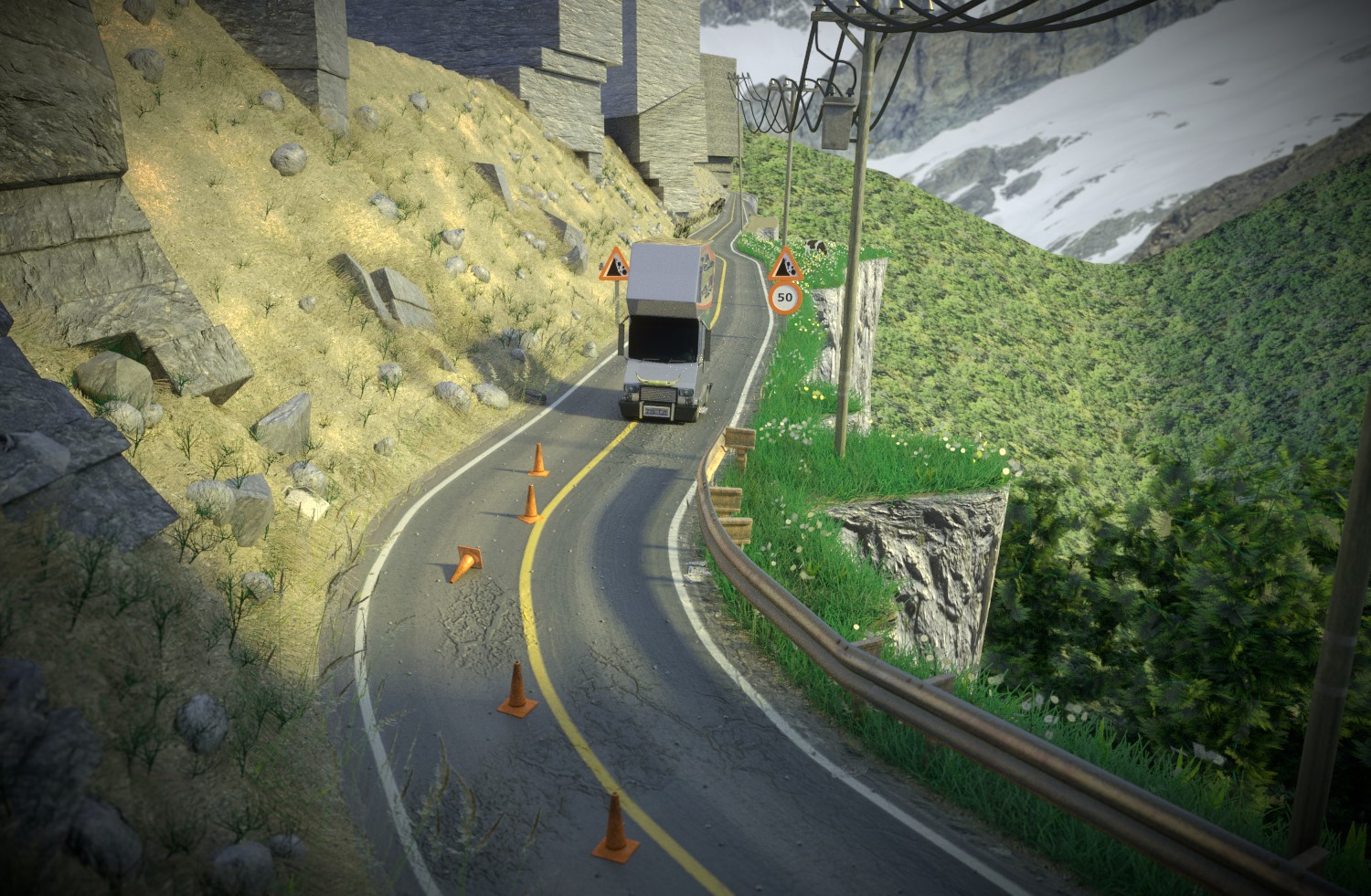 Pues pinta muy bien. Quizá el final de la carretera se ve un poco raro (igual mejor si acabara en curva), aunque cuesta un poco ver algunos detalles. Yo le pondría una niebla o lluvia quizá (por dar ideas :p). Saludos.