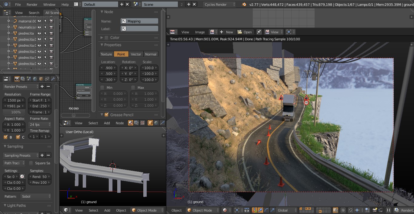 He estado haciendo prácticas hace un rato con los pases mist y depth en el compositor para lograr algo de niebla y me salen muchos puntos brillantes y bordes de sierra en algunos objetos. No sé si variar la parte derecha de la escena, que no parece encajar mucho y pensar otra cosa o difuminarlo de alguna manera. ¿Problemas de modelado o de composición? Trabajo me queda, aunque la parte izquierda me ha quedado mejor. Gracias por los comentarios. Saludos.