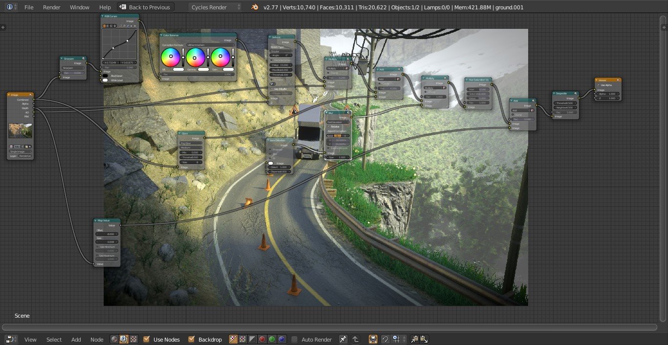 Pongo un render a máxima resolución de la imagen y los nodos de composición de Blender. A ver que cosas hay que cambiar o quitar. Sé que todavía queda trabajo. Saludos.