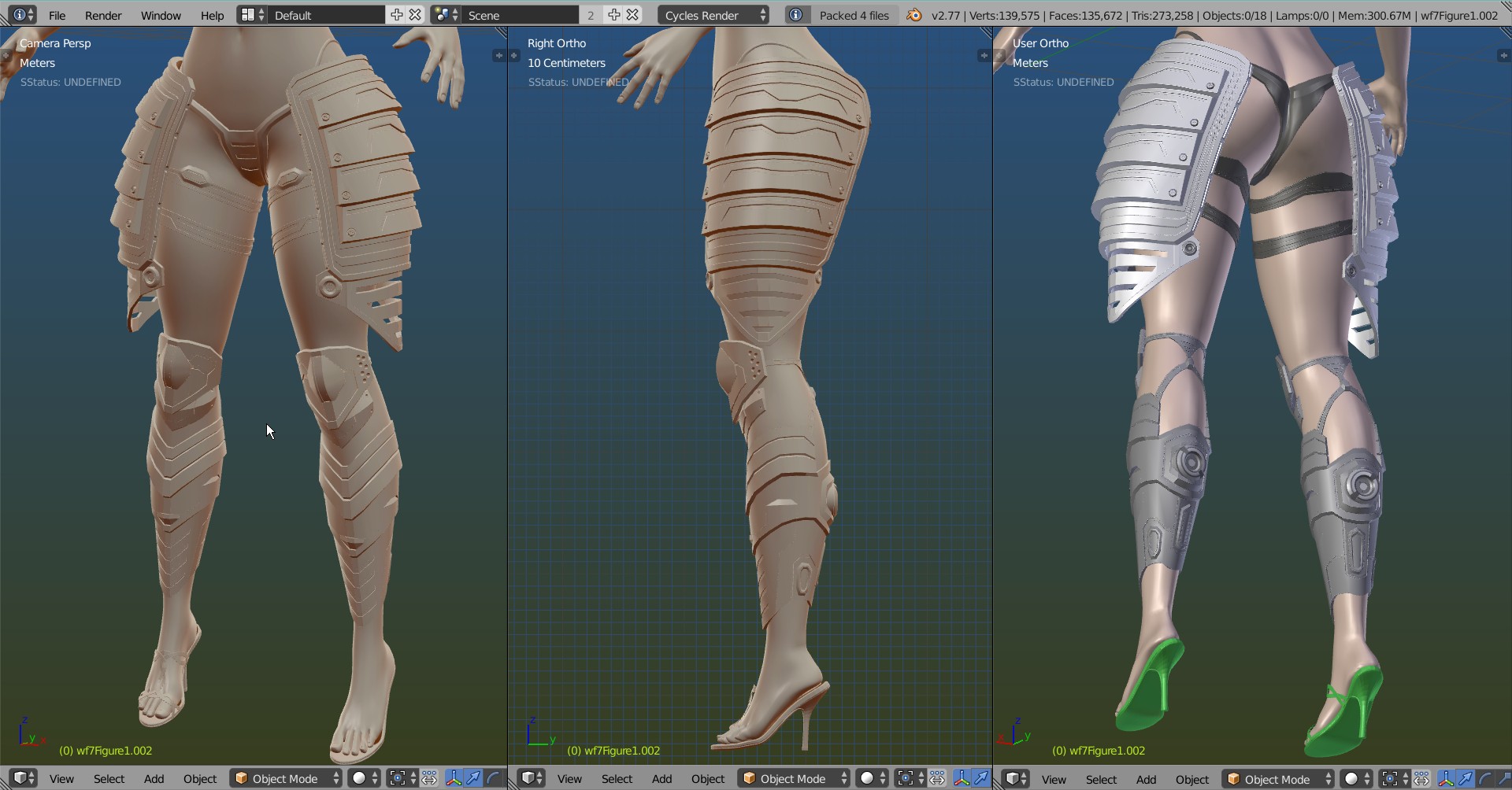 Hola a todos, hace algunos días comencé a modelar esta chica en los pequeños tiempos libres que tengo, la base femenina está en MakeHuman, luego algunos retoques con Blender para lograr las caderas y los pechos a mi gusto más otros retoques. Y a modelar la armadura.