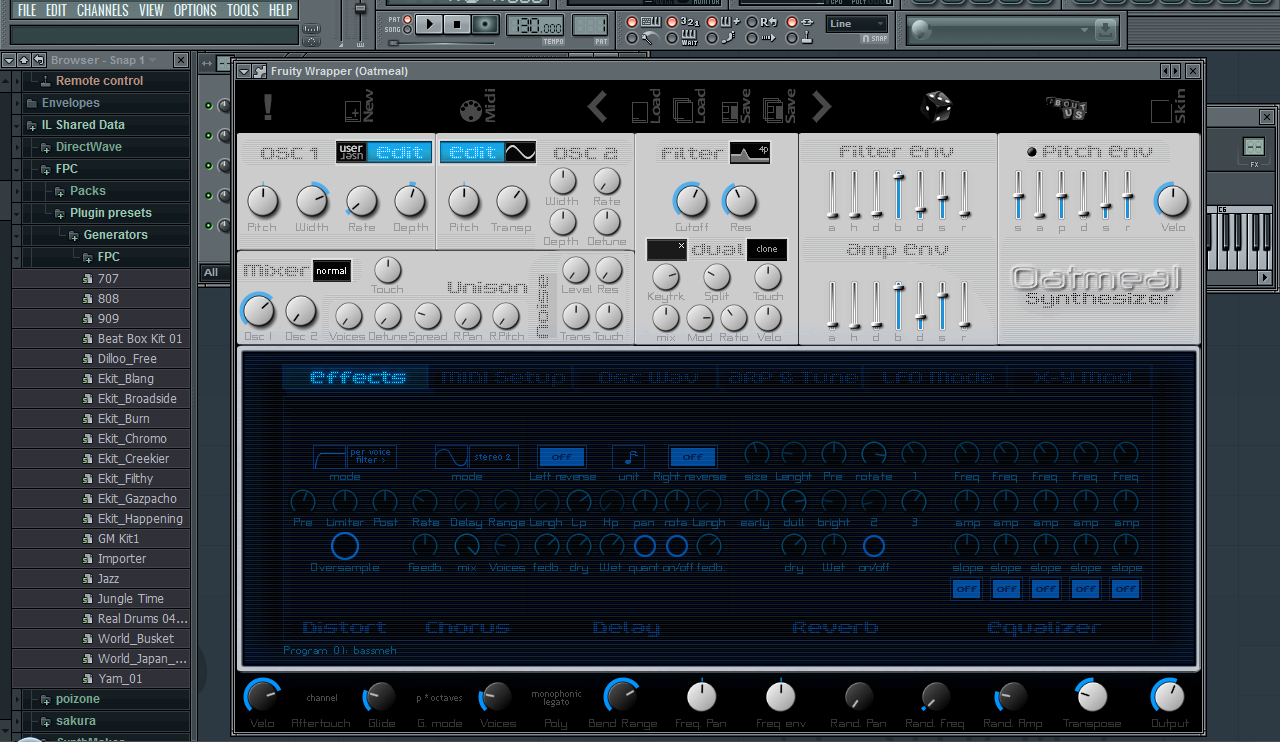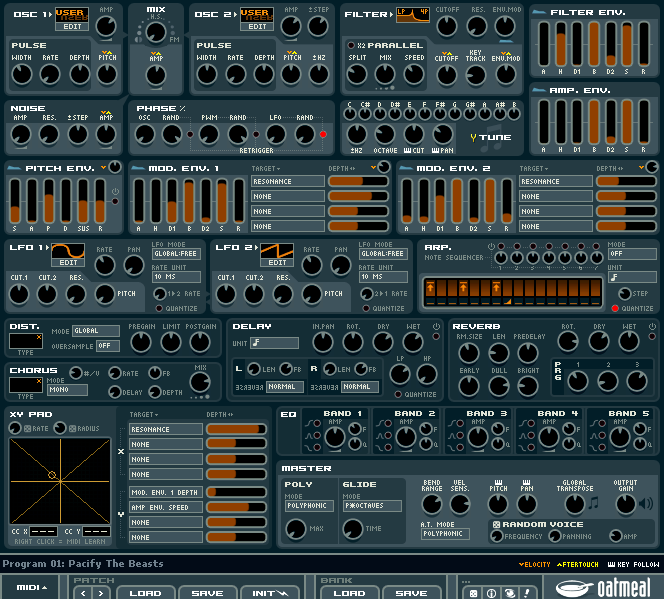 Bueno, es lo que tiene. Synth1 es que suena demasiado nasal (pues emula el nordlead que es nasal en si) y los filtros no son igual que otros sintes. Oatmeal es una brutalidad, tiene unos filtros muy buenos y un sonido muy limpio.