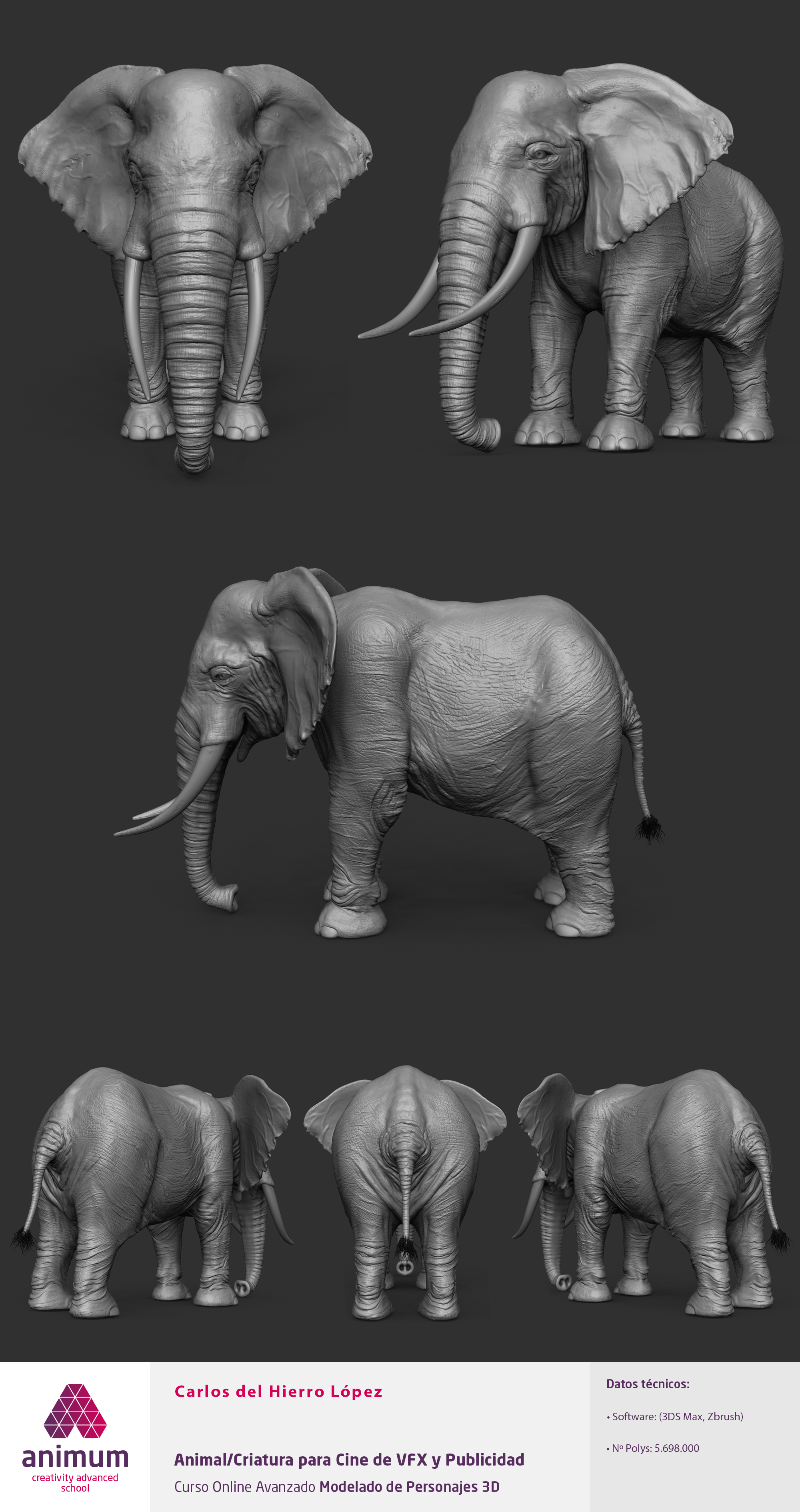 "La postura está realizada con ZBrush, los renders a tiempo real están hechos en 3dsmax con Xoliul Shader y la composición final está hecha en Adobe Photoshop".