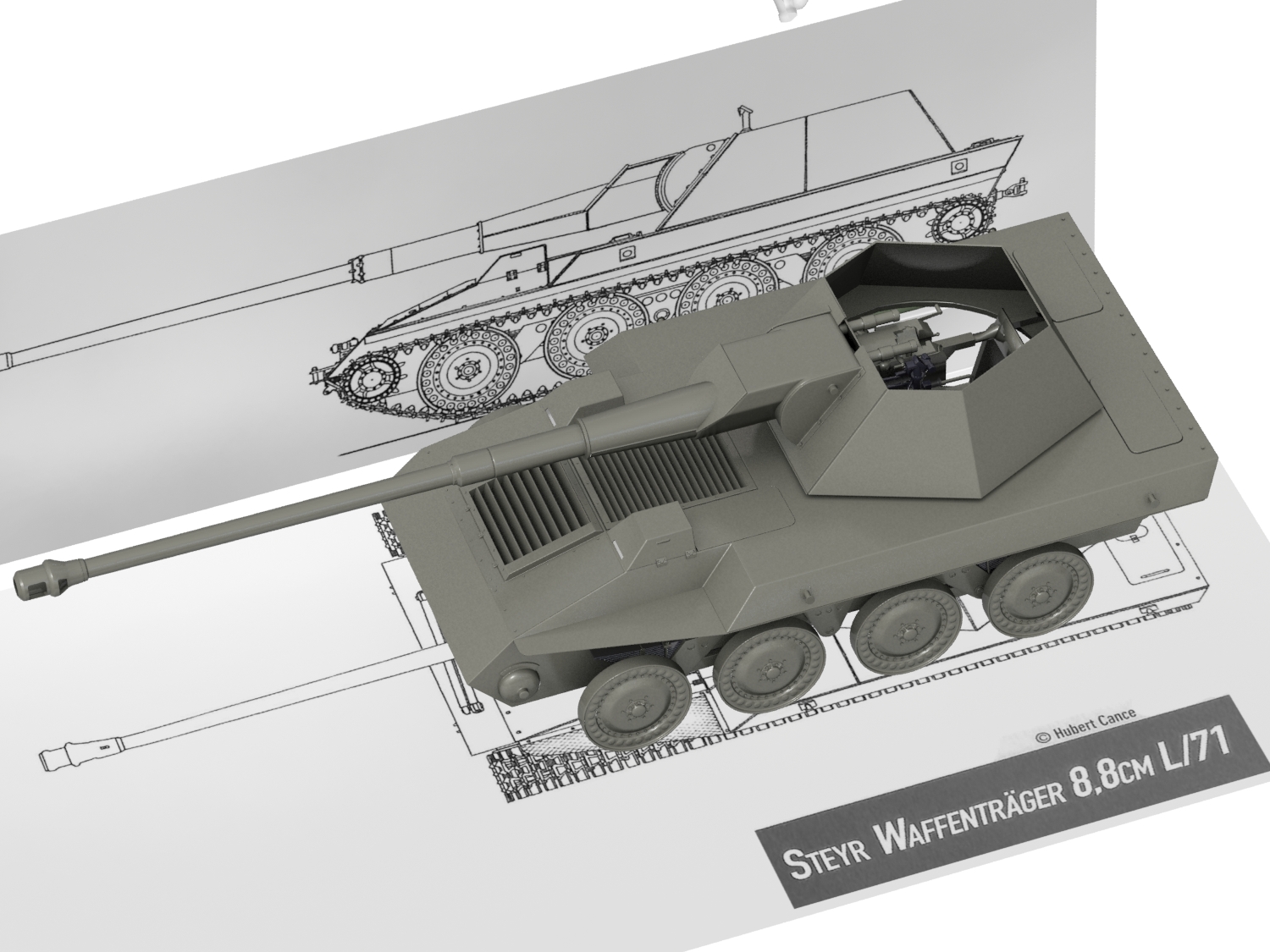 Lo empecé, pero es que hay muchos y muy buenos, de los cuales tengo un par. Vale que del M1 hay más, e hice unos cuantos, pero es que fue por encargo y de uno salen tres... La clave en esto de intentar vender es o hacer lo que no hay y bien, o hacer lo que hay muy requetebien y muy barato, y no compensa a menos que lo quieras para ti como desafío personal, y por ahora no me llama tanto. Fíjate que ahora me ha dado por modelar los carros ingleses de la Segunda Guerra Mundial. He empezado un Cromwell y si queda bien, de él salen varios más. Este que pongo ahora es uno de esos de desafío personal, porque hay cientos, pero este es el mío, el pequeñín que le llamo yo, un Hetzer. De él saqué la versión de recuperación, que hay pocos o ninguno en 3D. También os dejo otro chino que hice, un tanque ligero, el ZTQ-15, como no, de Norinco. Si encuentro alguno más, os lo subo.