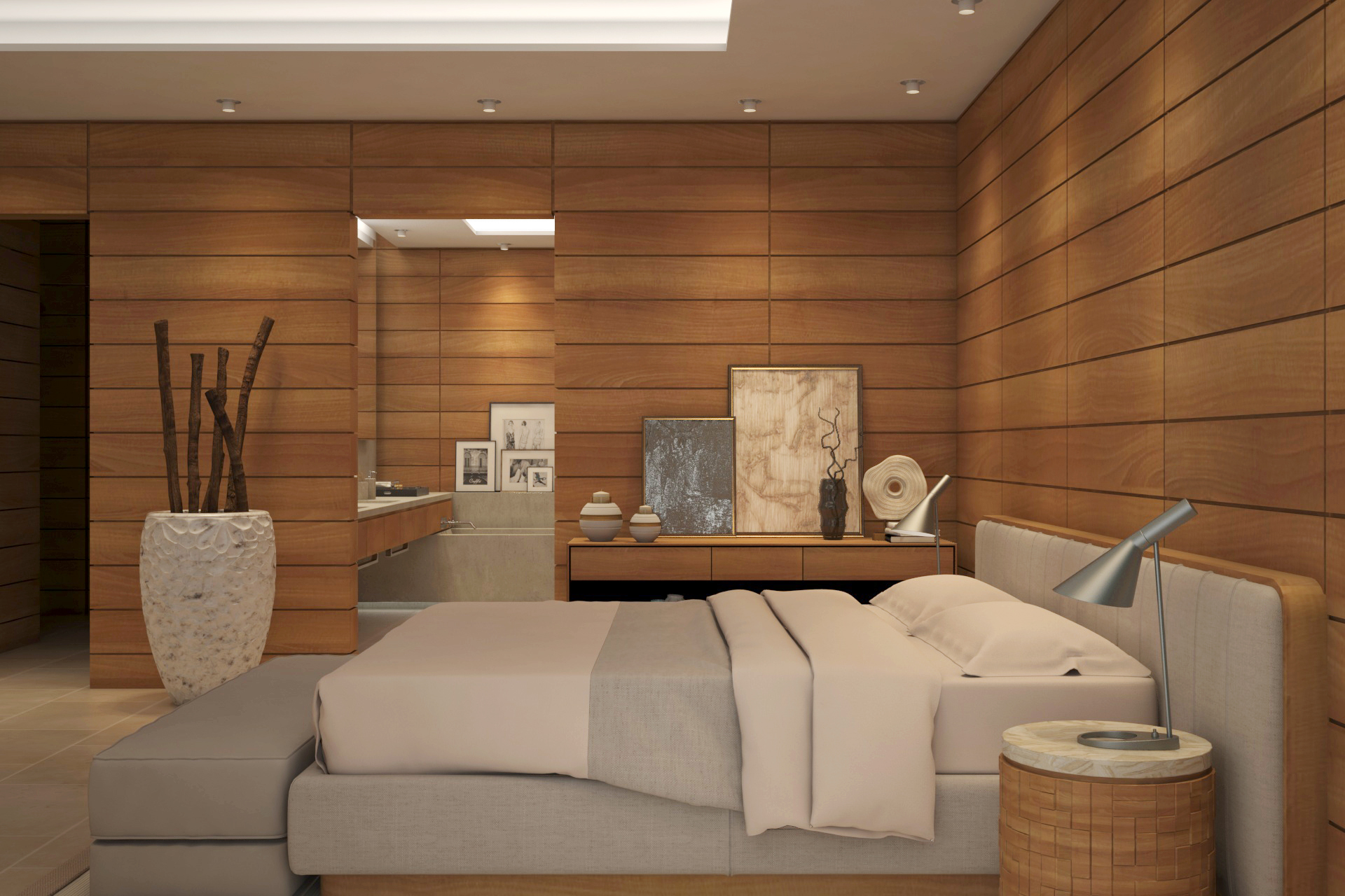 Muy buenas a todos, aquí os dejo mi último proyecto realizado como freelance para estudio de interiorismo en Madrid. Dormitorio de matrimonio principal con baño completo, todo ello panelado en madera.