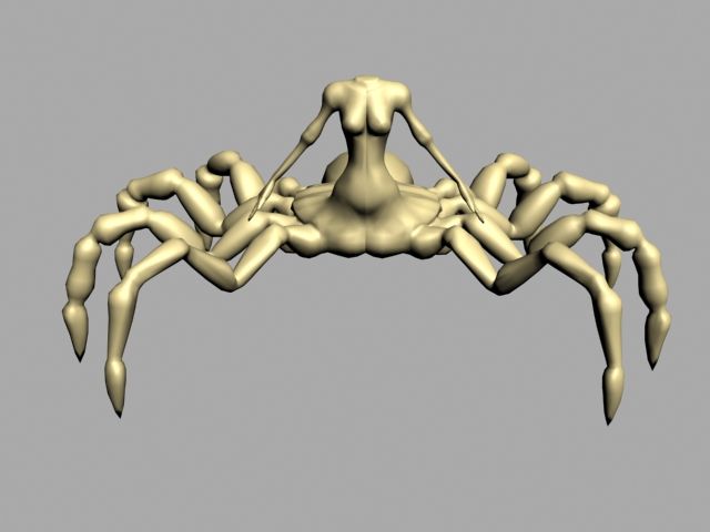 Tienen razón sobre el culo y las manos, gracias, lo de las patas estoy por modificar una a una porque me eh estado fijando en modelos de arañas saltarinas y las 3 patas de atrás las tienen casi por completo debajo del torso (hablando en idioma de arañas reales) así que, no serán las 3 iguales, resulta que llegue a cierto nivel de Doom 3 y quede avergonzado con mi primer modelo al ver la jefa que modelaron, aquí se las dejo. Saludos.