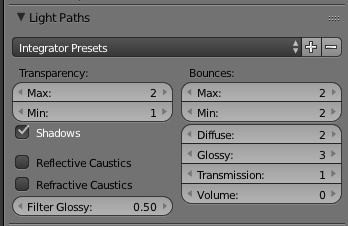 Igualmente, por defecto, los valores en la pestaña de Light Paths suelen estar muy altos.