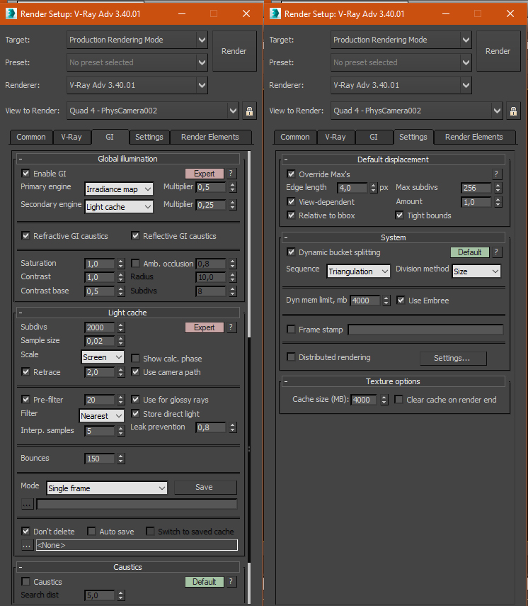 Primarios con irradiance y secundarios con light map (también lo he probado con fotones y sale igual). Muchas gracias.