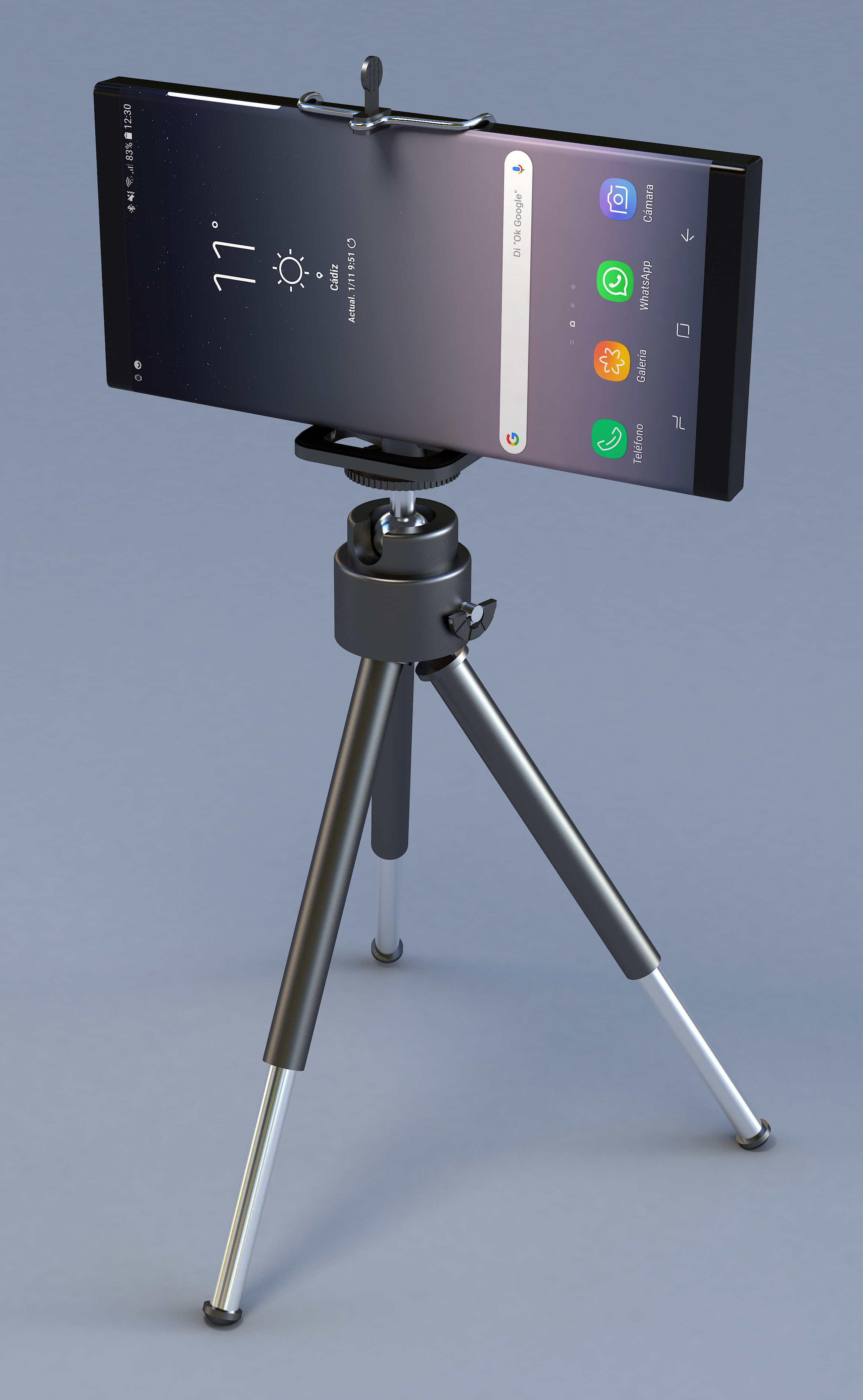 Está bastante bien Alvarot, tienes un poco de aliasing en los reflejos de la pieza cromada superior, además que las extensiones del trípode al parecer las has dejado sin suavizado, se ven los edges durosy se ve algo raro la extensión trasera del trípode, me refiero al material.
