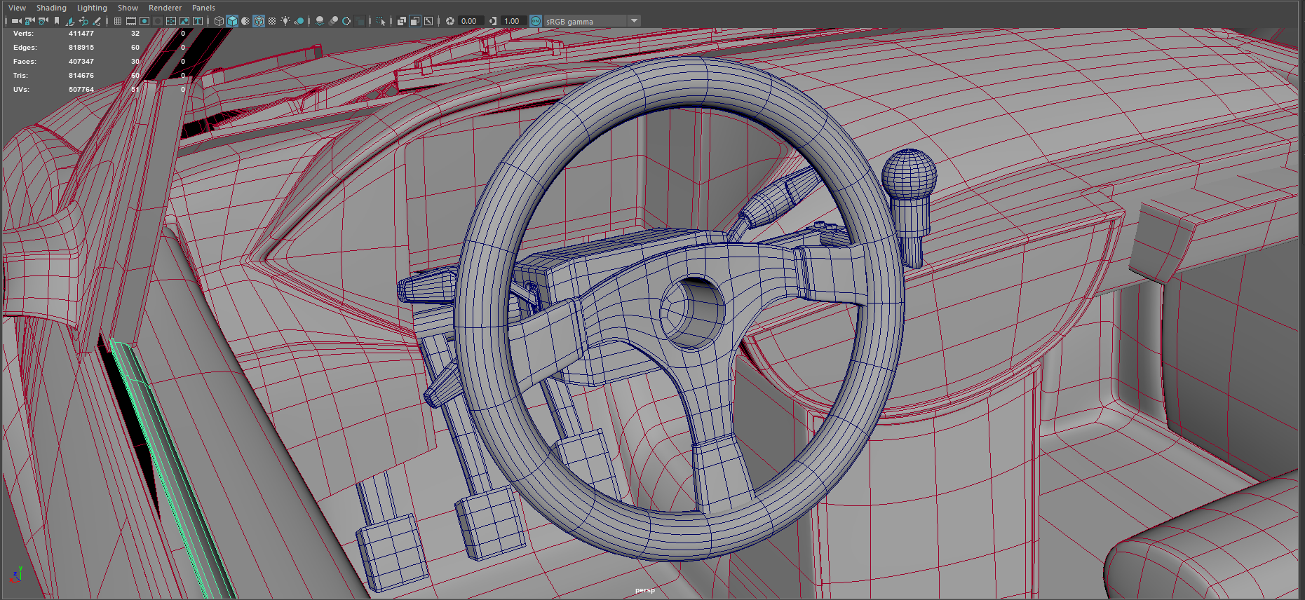 Hola Chicos, bueno el interior del Coche ya casi lo tengo acabado ¿Qué os parece? Me ha costado mucho ya que no había mucha información exacta del interior de este vehículo y no sé si me he pasado de vertex, ahora estoy pensado, no sé si ponerle los botoncillos del cuadro del salpicadero o no y si lo texturizo o no, es que me gustaría ya montar una demo reel y estoy en la duda. Saludos.