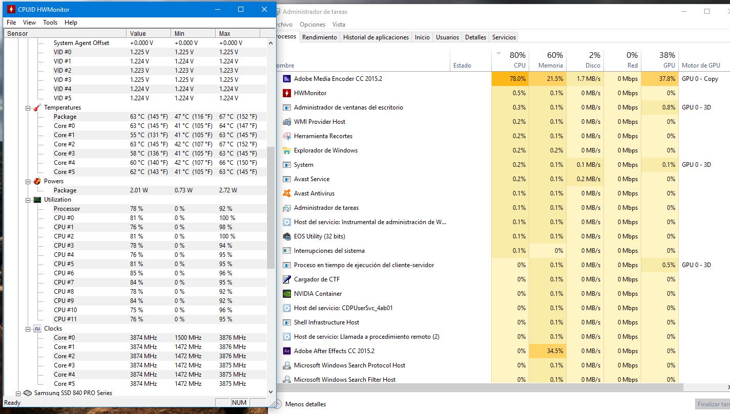 Actualmente estoy haciendo ediciones de video en fullHd con material Hd o fullHd, estoy teniendo demora al hacer render o no sé como aumentar el tiempo que me parece demorado. Una edición de 56mint más o menos (con casi nada de proyectos muy simples en After Effects en Dynamic linc), me demora 2 horas y un poco más. Las tomas en quicktime en compresión animation 70%, también da ligeros tirones no en tiempo real al darle play. (No siempre, pero en otras tengo que volverle a dar play y se arregla y en otras no). Cómo podría acelerar el proceso de render? Haciendo OC al procesador? (nunca he hecho uno). Cambiando la tarjeta de video para acelerar el render vía CUDA? Ocon la quadro que tengo es suficiente? Estaba pensando en comprar una GeForce 1070 y así tener las dos, tanto para 3d (quadro) como para after y Premiere (gforce). (hace muchos años tenía una GTX 460, pero se malogró) también podría cambiar la quadro k2000, por una P4000. Con eso mejoraré tiempos de render? Estoy pensando cambiar el SSd por otro Samsung NVMe 970EVO plus para acelerar un poco el arranque de los programas.