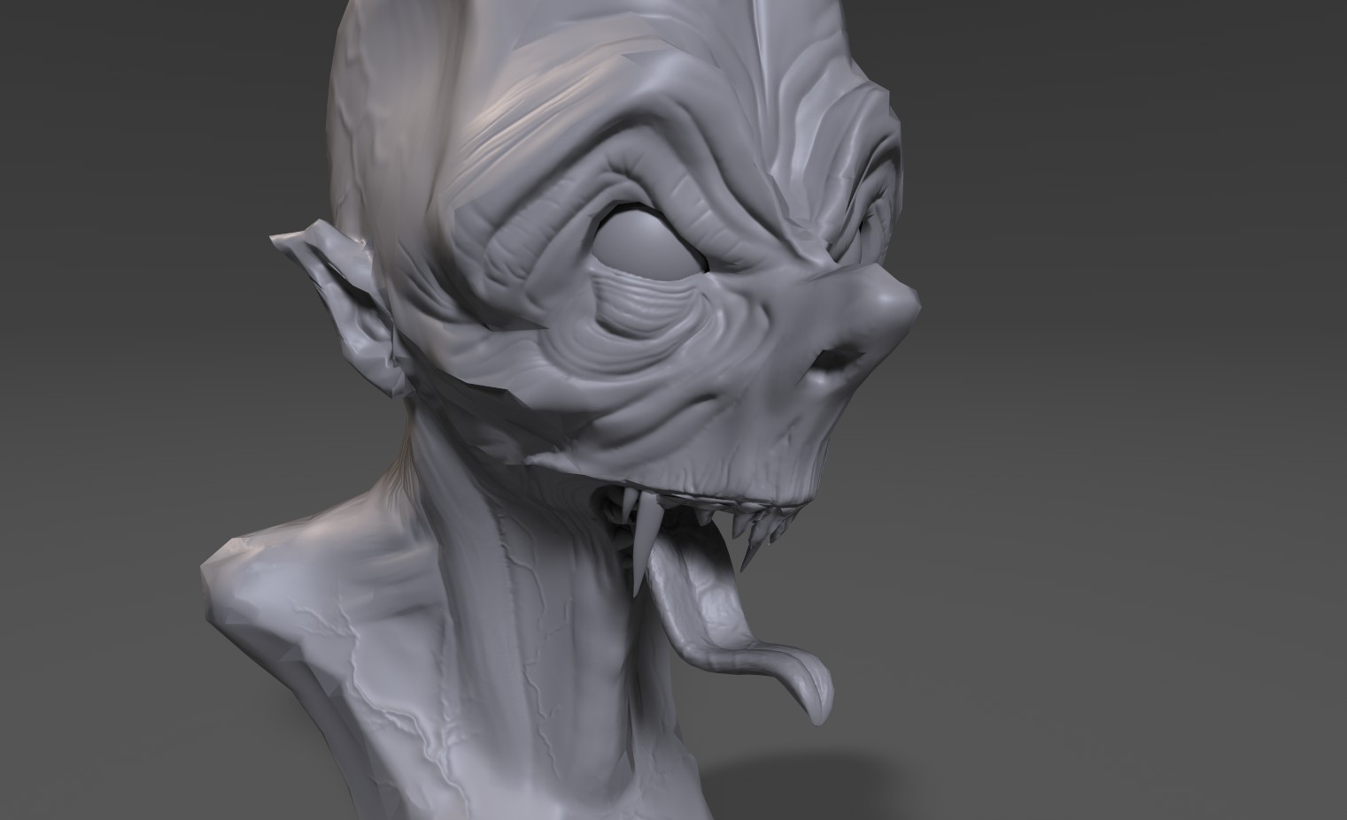 Ahora el problema es que para texturizarlo en Substance Painter, he perdido la selección por materiales que tenía de 3ds Max para poder pintar: ojos, dientes y lengua de forma independientes. La pregunta es: ¿Se pueden consevar las seleccion por materiales en ZBrush que trae de 3ds max? Tal cual está se puede texturizar, pero sin seleccion por materiales se puede hacer muy tedioso sin el apoyo de la seleccion por partes.