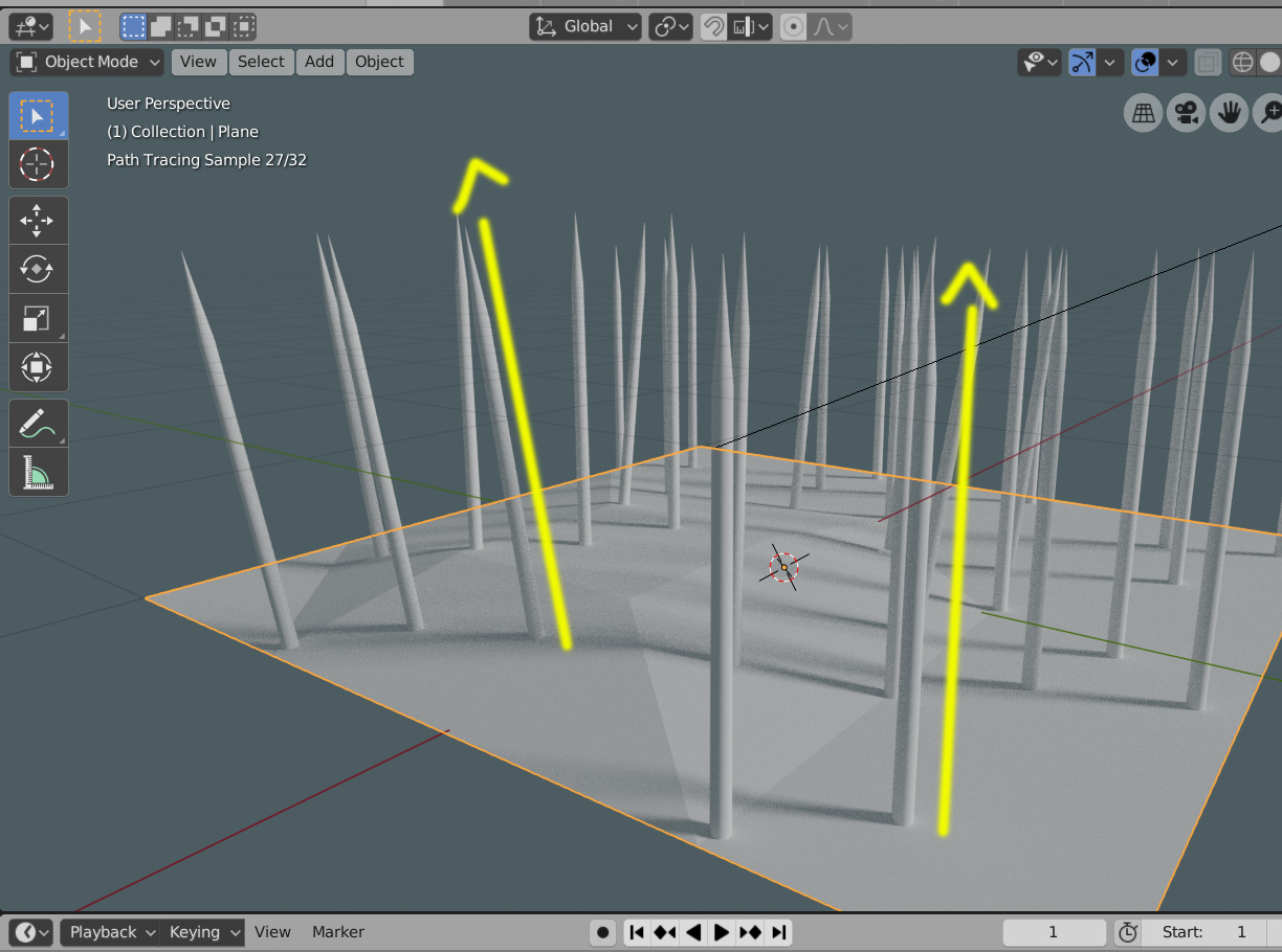 Si no has tocado nada de tipo Randon (aleatorio) deben de salir rectas, pero pensando siempre que apuntan a la NORMAL de la cara (dirección de la cara).
