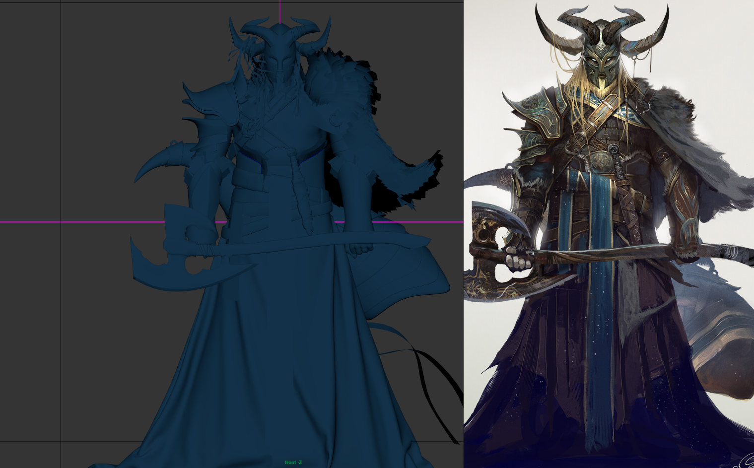 Buenas! Comence hace unos días a realizar un modelo 3d a partir de este concept: https://www.artstation.com/artwork/e0x3vX como proyecto personal.