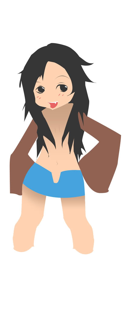 Buenas, a mi el dibujo me gusta bastante, sobre todo la cara. Pero hay cosas en el cuerpo que no me acaban de convencer, no sé si son los detalles o sombras, respecto a la ropa, cuando lo pases a FreeHand, prueba a ver, ponerle algunos detalles a la ropa, como los bolsillos del pantalón.