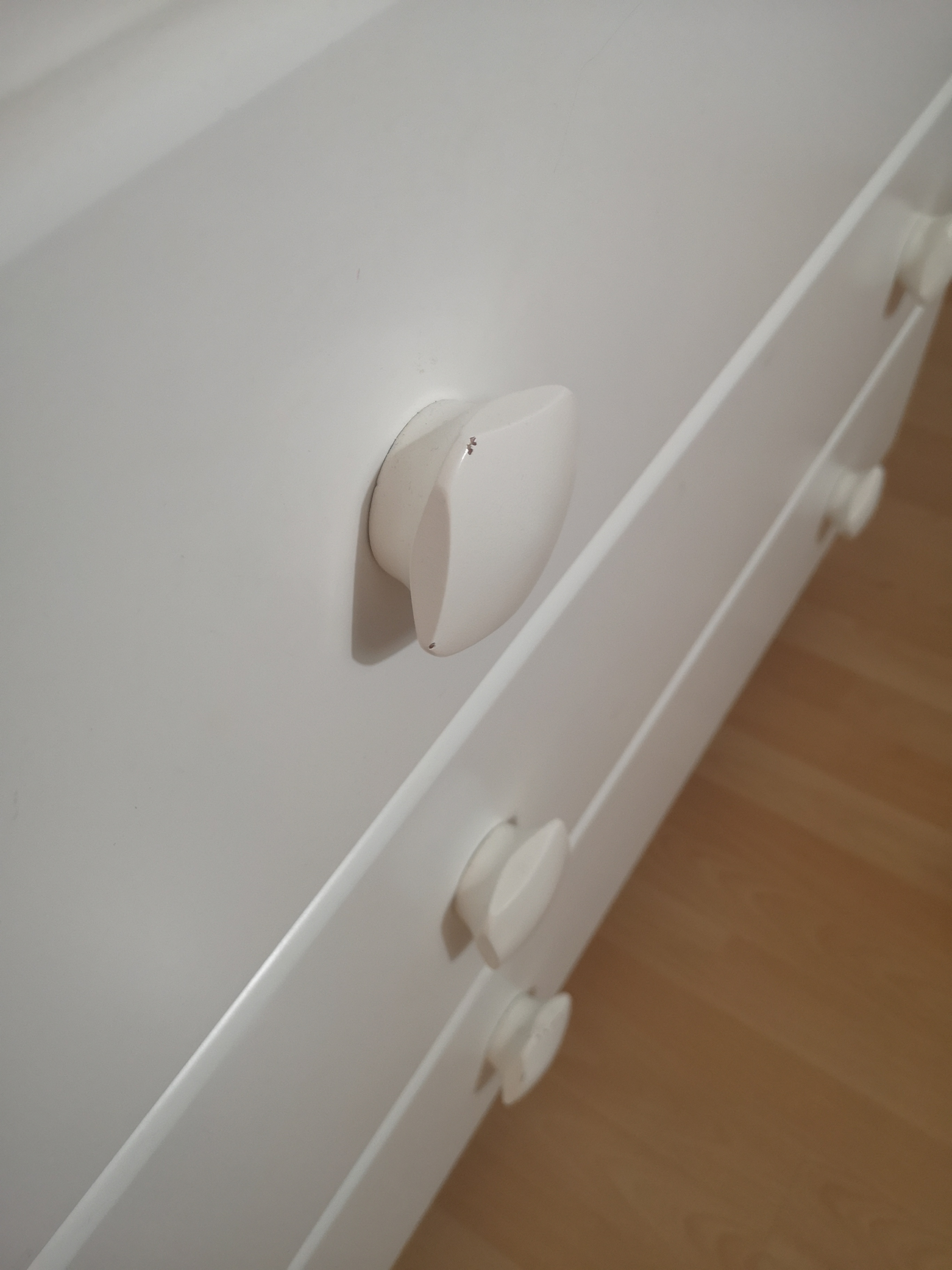 Hola a todos, esta tarde estoy con un armario bastante básico hasta llegar al tirador. Adjunto fotografía porque no se como hacer los tiradores de los cajones, la verdad, ¿alguien sabe cómo?