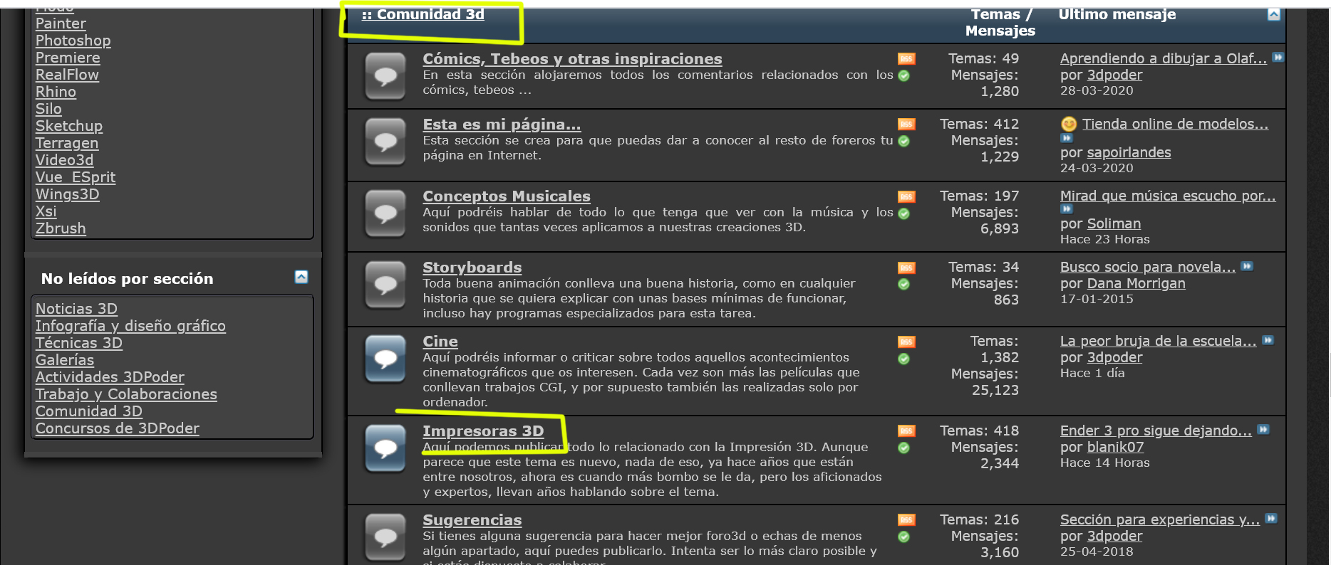 Busca en FORO y luego eliges la que se adapte a tu pregunta, que en este caso es. IMPRESORAS 3D