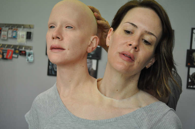 La compañía Fractured FX construyó una prótesis como la que podéis ver en las fotografías adjuntas, y posteriormente FuseFX creó las partes necesarias para conectar esa segunda cabeza al cuerpo, dando texturas y animando el conjunto del cuerpo y cuello estirando los músculos a medida que la protagonista efectuaba los movimientos. Llegado este punto, la atención por los detalles es fundamental, por ejemplo, la simple respiración, esta provoca un movimiento en el pecho cuando se llenan y se vacían los pulmones, así que hubo que sincronizar la respiración del modelo digital para que coincidiera con el movimiento del pecho. Para capturar todo el diálogo y el trabajo en primer plano, se filmaba cada escena dos veces, una vez por cada personaje.