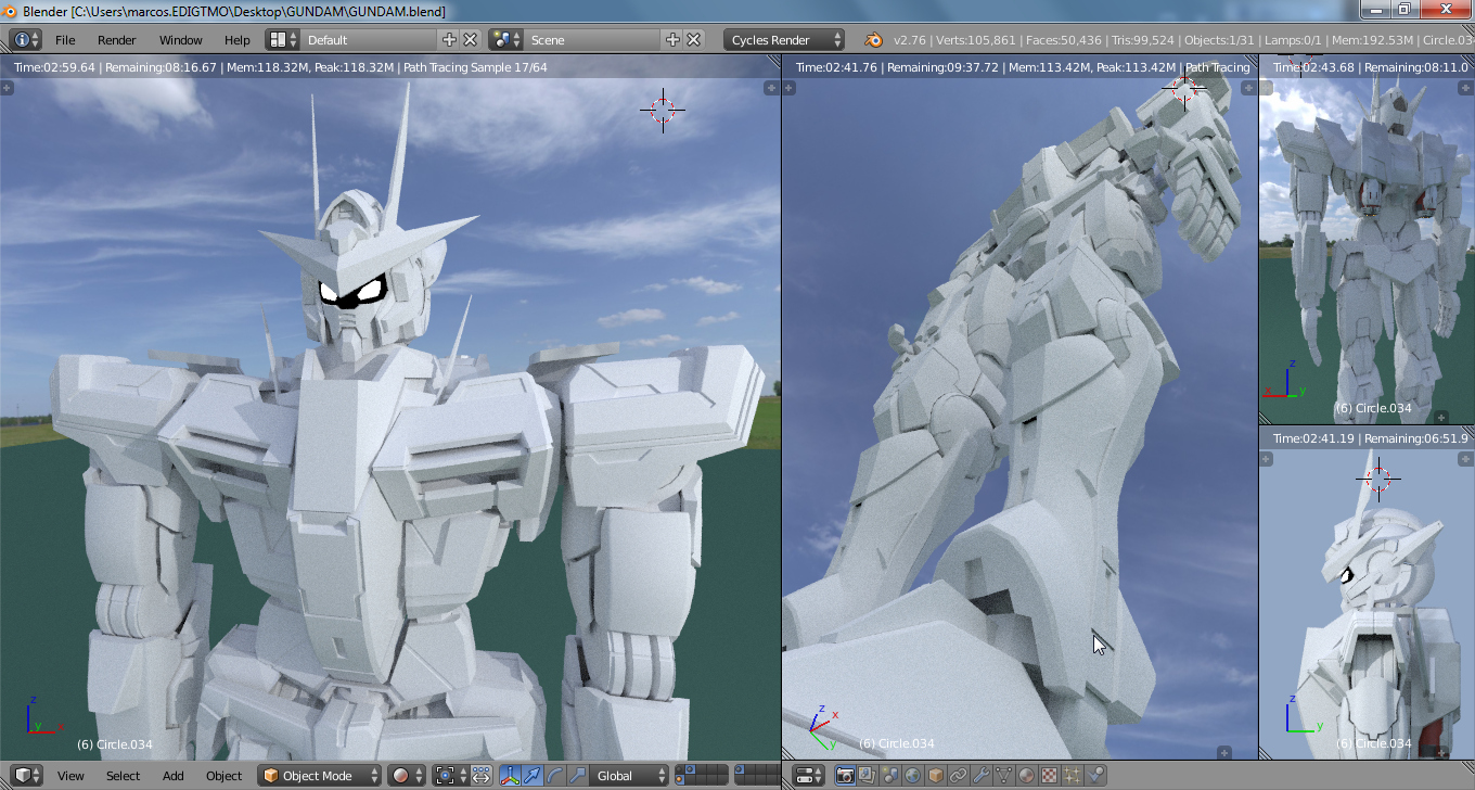 Blender 2.76, aquí algunas imágenes del progreso, espero que les guste. Saludos.