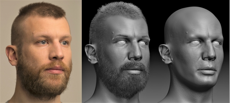 El enfoque de construcción era más o menos tradicional, excepto que no tenían ninguna opción de usar un escáner 3D de cuerpo completo. Hicieron una exploración muy aproximada usando fotogrametría, y luego finalizaron el modelo en ZBrush.