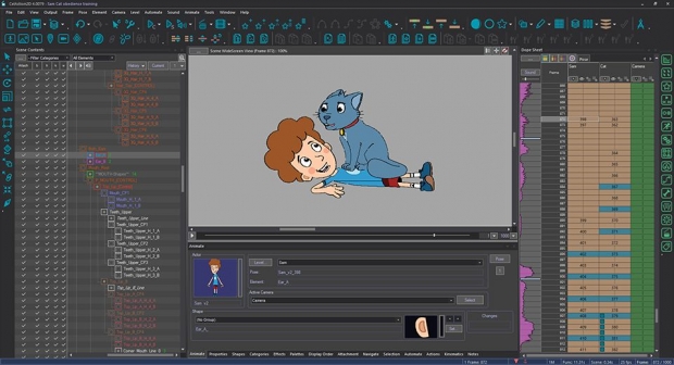 El primer módulo es CelAction2D Animator Edition, que es una versión menos costosa de la popular CelAction2D Professional Edition, pero sin las herramientas de rigging. De esta manera, los estudios más pequeños pueden comprar solo un par de licencias de Professional Edition para sus animaciones, y sus animadores pueden trabajar con las licencias de Animator Edition, para que puedan pagar el mínimo absoluto y seguir recibiendo un producto de primera clase con el soporte que necesitan.