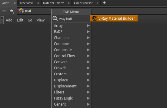 En la red de esteras, crea Vray Material Builder y sumérgete en él.