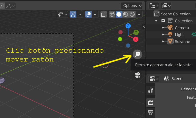 Otra forma es con CTRL presionado, rueda del ratón presionada y mover ratón.