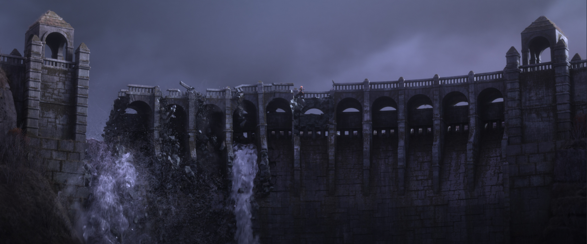 Destruyendo estructuras en Frozen 2. Para la secuencia de la presa, Walt Disney Animation Studios tuvo que simular el agua que corría, y también la destrucción de la propia presa claro está, la destrucción de la presa iba a estar en el clímax de la película y era necesario crear un sistema de trabajo complejo que incluía casi todos los departamentos del estudio para configurarlo correctamente, desde el desarrollo visual, pasando por el modelado, el diseño, los efectos, la animación y la iluminación.