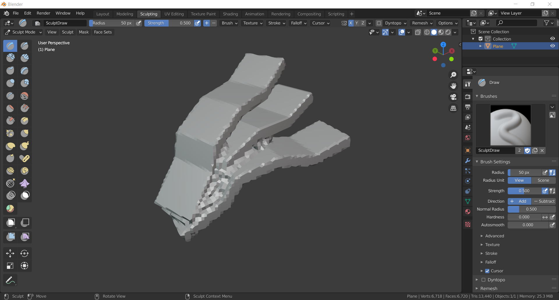 A partir de ahí, tienes una base sobre la que esculpir con los pinceles estándar, claystrip y crease. Quizá puedas usar alphas para agilizar el trabajo.