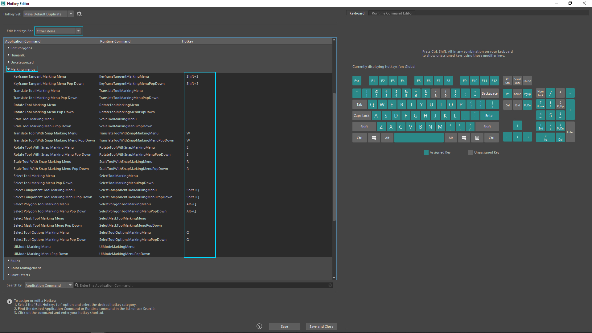 Mi duda es que no sé que teclas usa para sacar el Marking Menu.