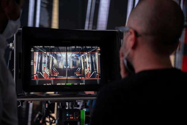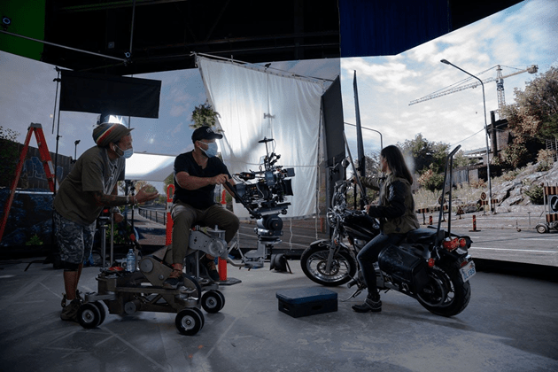 En el transcurso de cuatro días, los actores se sentaron en coches, en motocicletas y juguetearon con una selección de armas, todas las secuencias que fueron diseñadas para mostrar la interactividad sin precedentes entre el videowall LED, los entornos virtuales creados en Unreal Engine, la iluminación y la configuración de producción del mundo real, y entre el talento y los creativos.