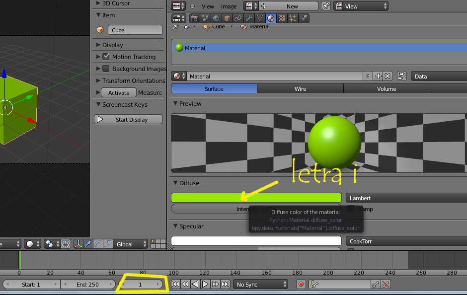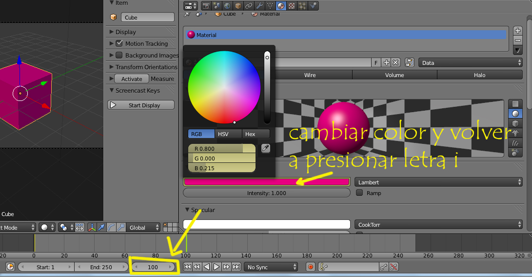por ejemplo: en el keyframe 1 el objeto es azul y en el keyframe 10 el objeto ahora es verde.