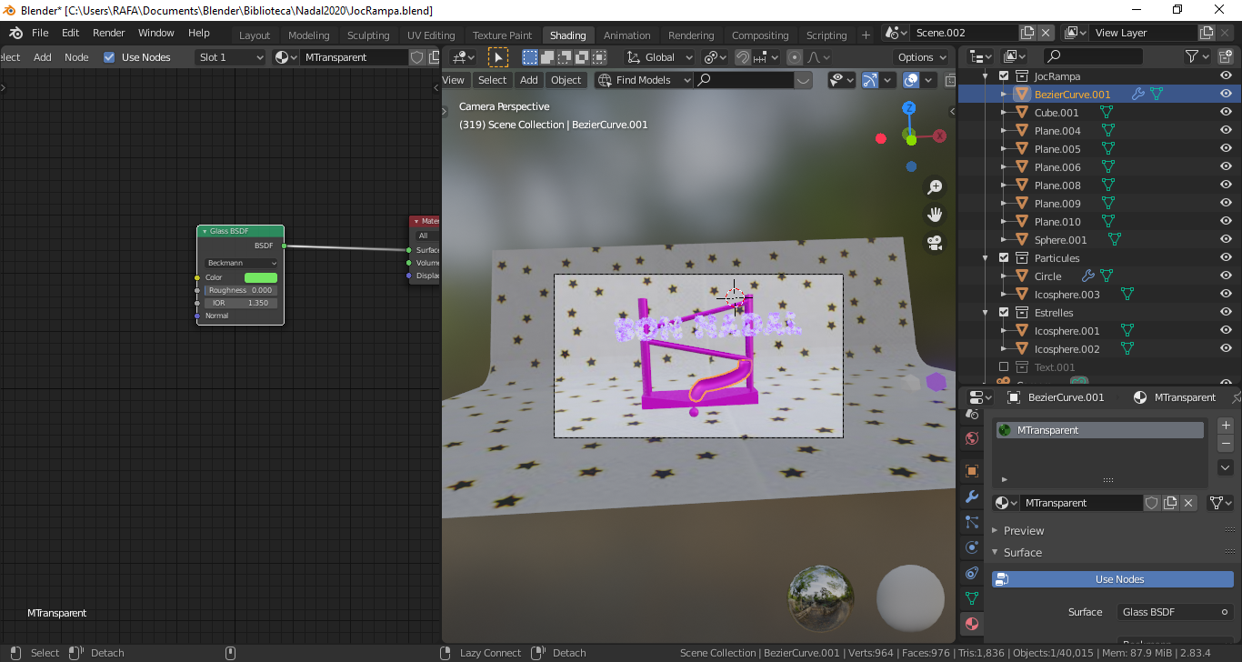 Hola. Estoy con Blender 2.83. Tengo un problema con los materiales. Defino los materiales a mi gusto y yo contento. Cierro el programa y hasta otro día, cuando vuelvo a abrir el archivo todos los materiales aparecen en magenta, como si les faltara la textura, aunque no falte. Pasa incluso con los materiales que no tienen ninguna textura asociada. Adjunto una imagen para ilustrarlo. El material Glass corresponde al tubo de la parte inferior. Gracias.