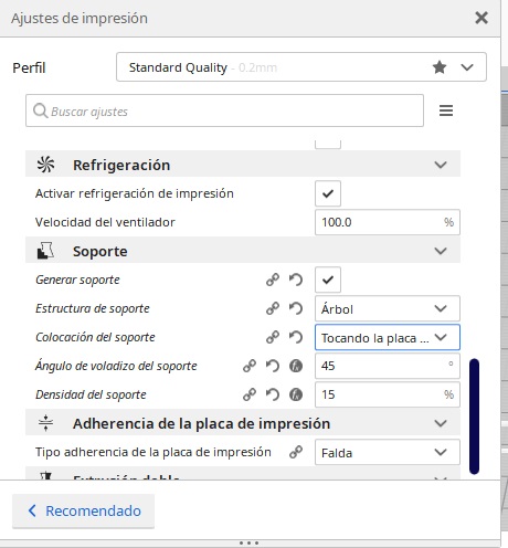 Como se ve en las fotografías, la impresión comienza mal, aunque durante la impresión, no lo notas, cuando despegas el modelo, y comienzas a quitar el soporte, descubres lo que se ve en las fotografías.