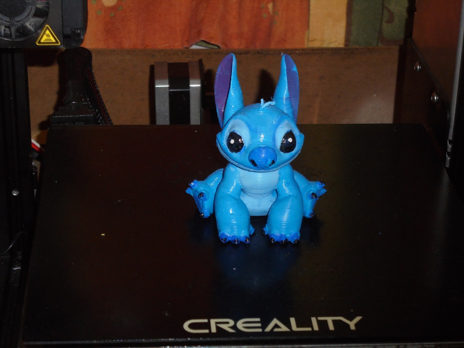 Hola. Después de dos días calibrando todo concienzudamente, imprimir varios modelos de prueba y demás, me pasaron un modelo de Stitch para terminar de ajustar la retracción, ésta está bien pero me salió un error en la cabeza y las orejas (que además se rompen).