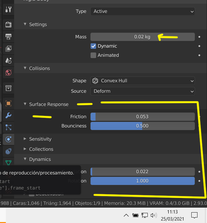 Otra cosa, ¿Dónde está el Calculate Mass que menciona el manual en el panel de propiedades de físicas?