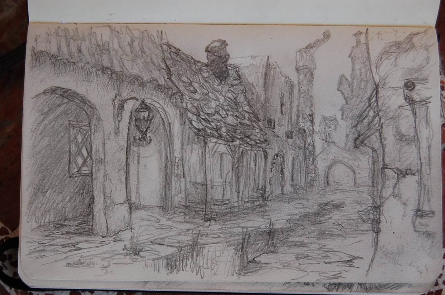 El dibujo con el que estrené el moleskine. Una calle de la historia que nunca terminaré: