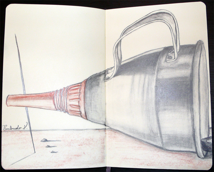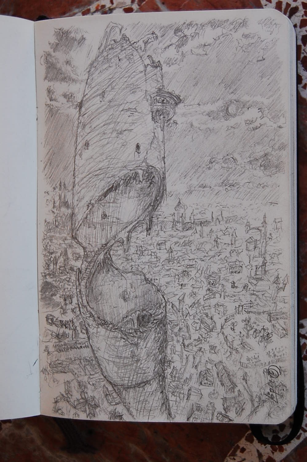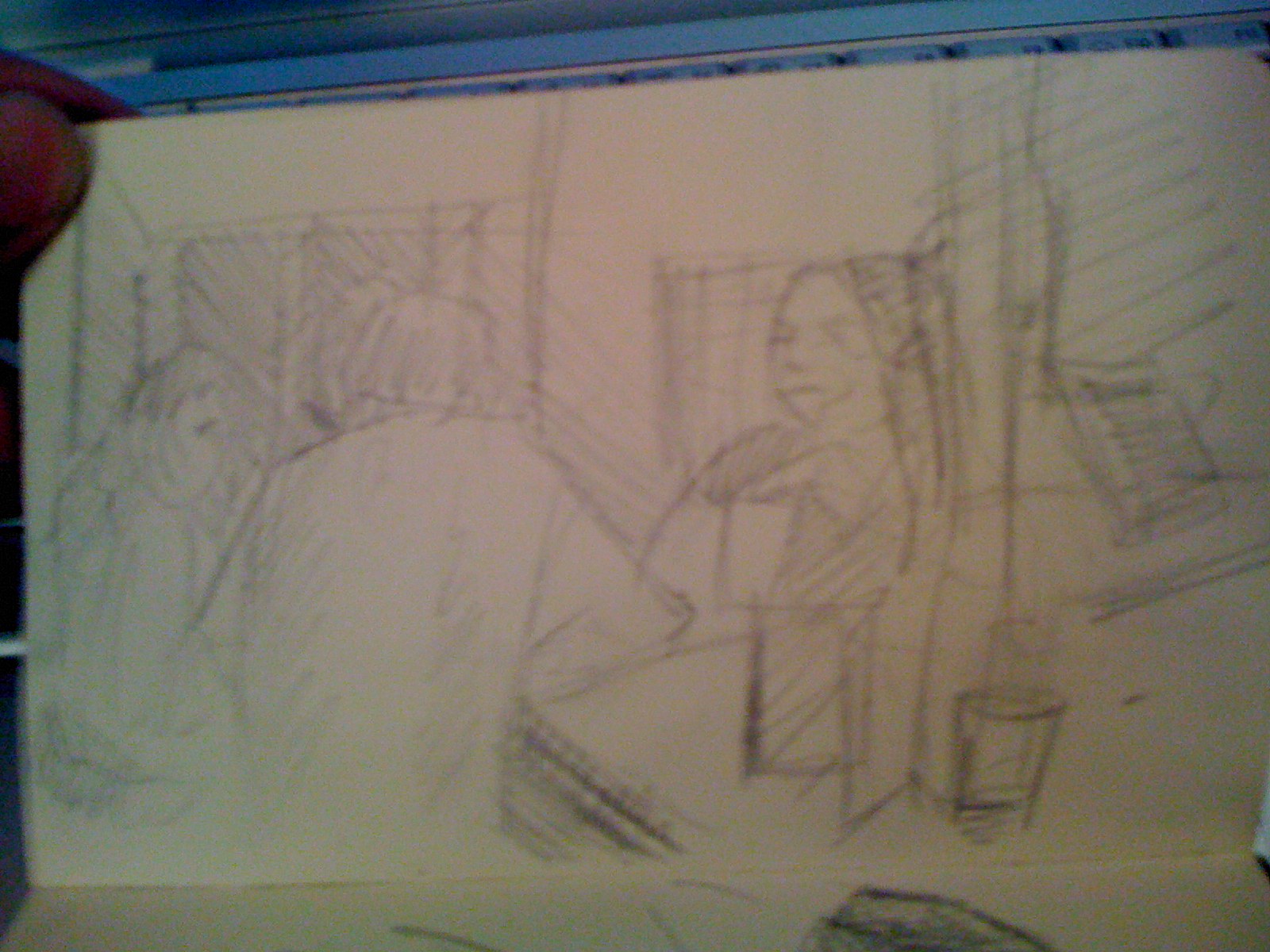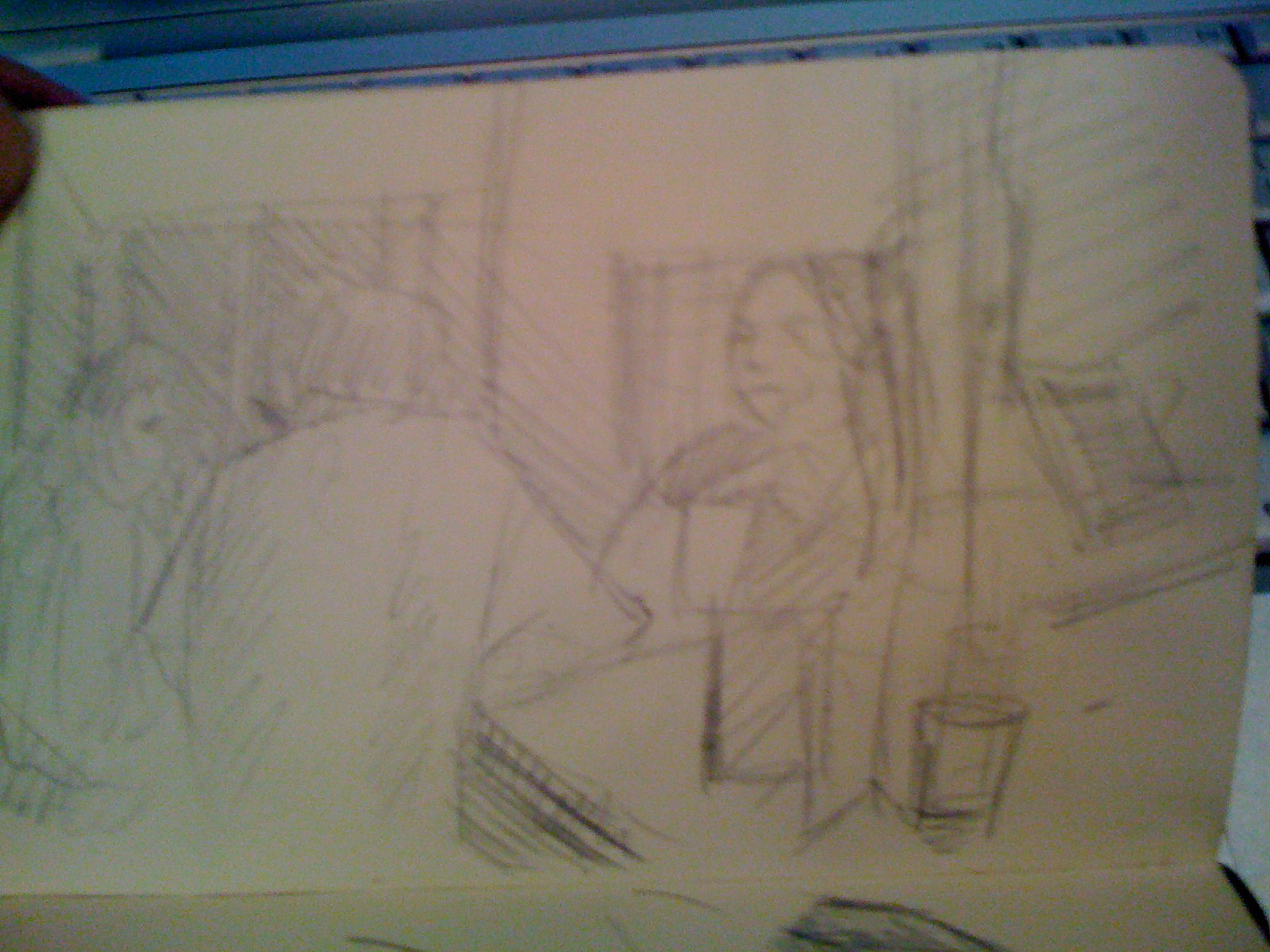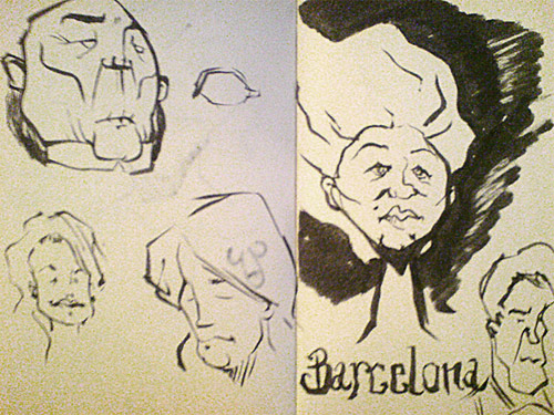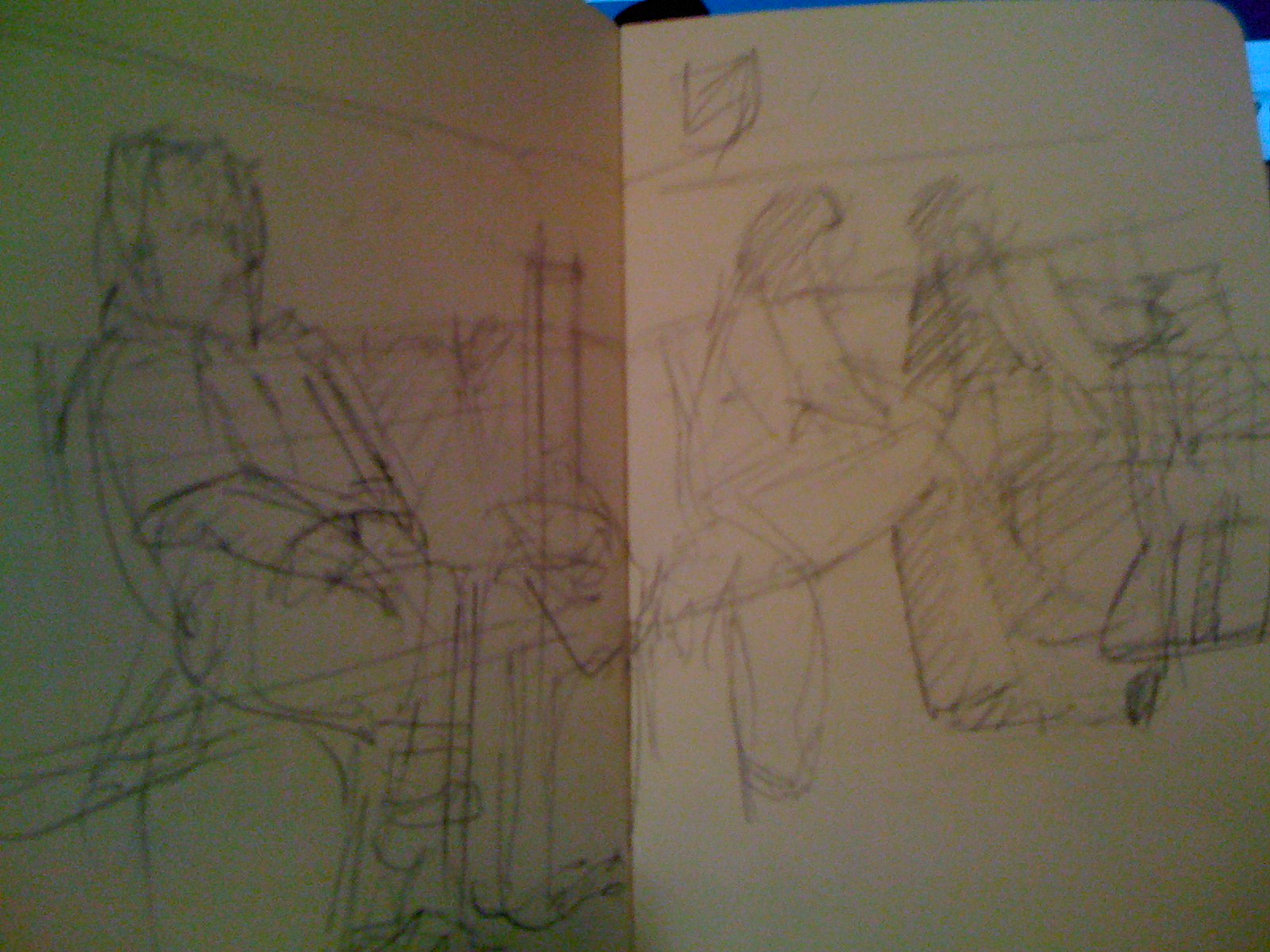 Por culpa de este hilo me compre una moleskine para dibujar un poco en el metro. Hace un par de días dibujé en la última hoja.
