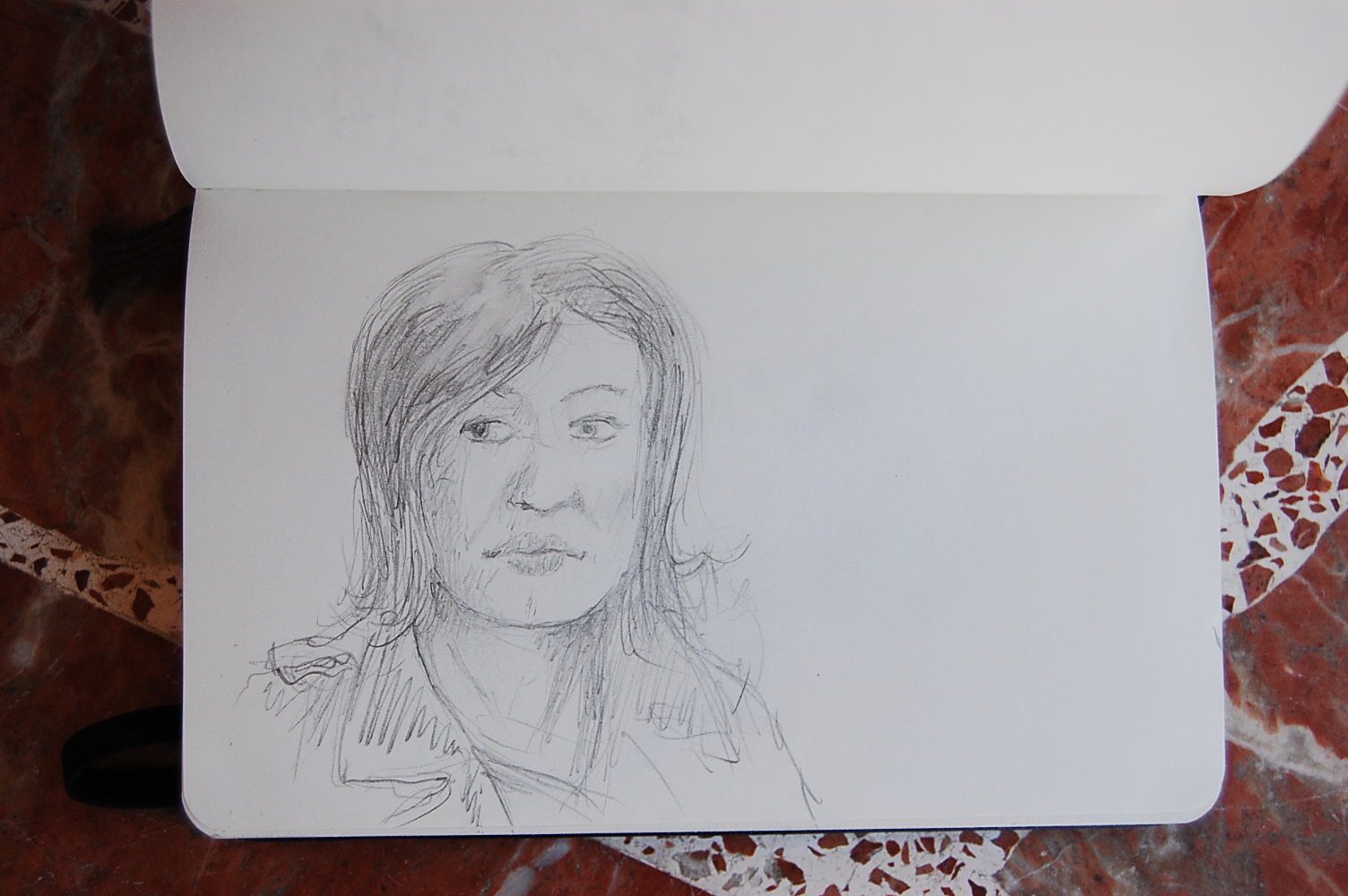 Una de las mujeres más guapas que me he encontrado en el autobús. Supongo que lo era bastante más que en el boceto: