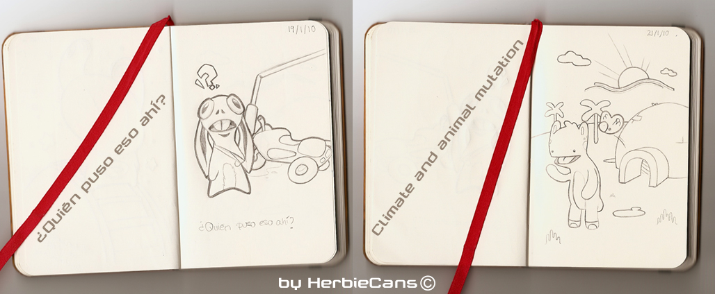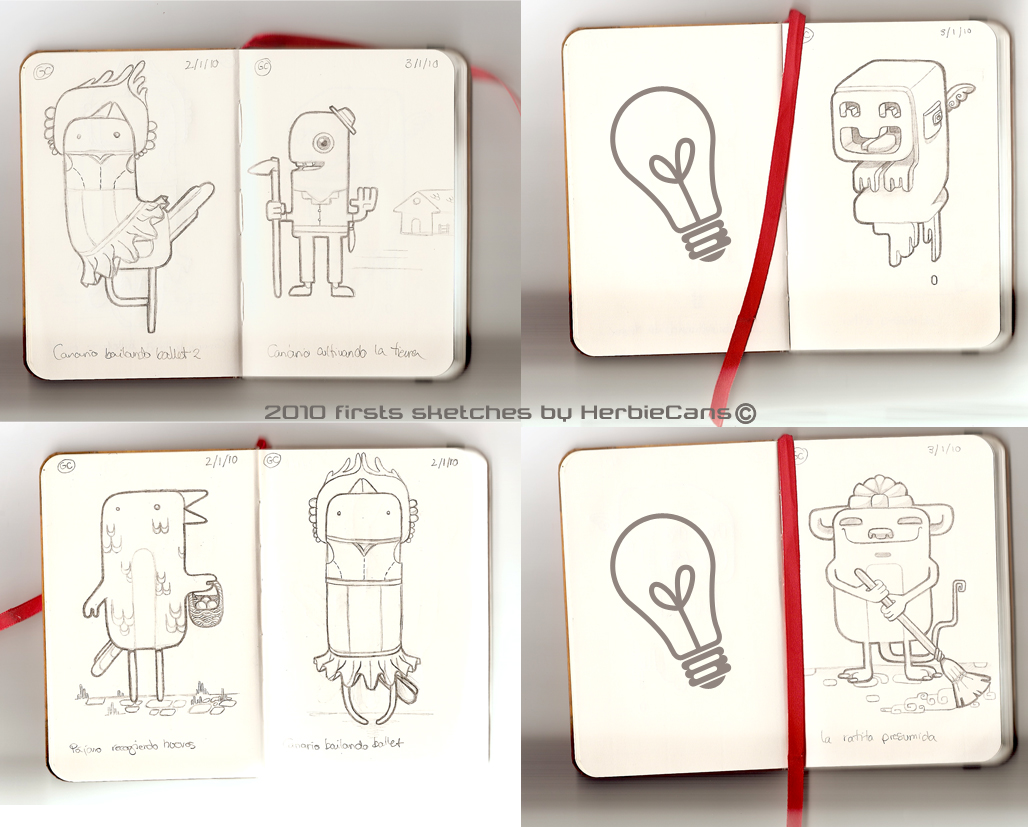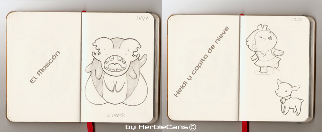 __ lo del chupachups volador tiene que vacilar si o si. Bueno esto no es una moleskine propiamente dicha, pero el formato es el mismo, ahí van mis primeros bocetos de 2010.