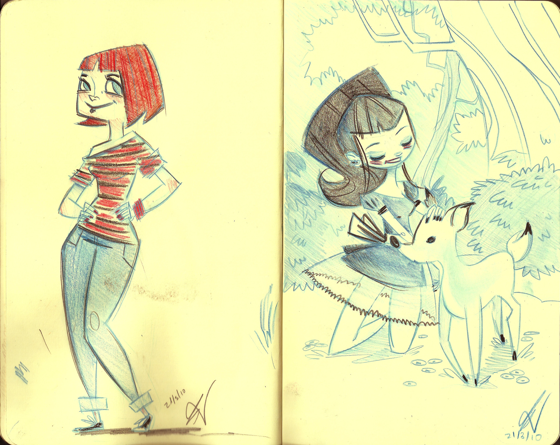 Bueno, abrí un tema nuevo con mi portfolio, ahí tengo bocetos e ilustraciones de personajes más acabadas. Creo que ya sale la dirección en mí firma.