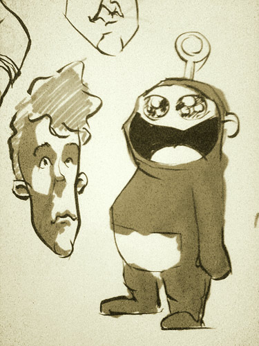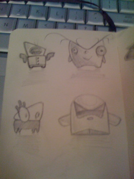 Jar, al hilo de la cuestión. En febrero me regalaron una moleskine edición limitada por lo que dice aquí, packman edition os, amarilla ella, muy guapa por fuera con imprimaciones del mítico juego, pegatinitas and Whatever in the wheather, pues voy, la estreno y mi veredicto es que de diseño monisima, pero el papel guárdame una cría de eso. Casi te limita a dibujar por una sola cara porque traspasa el lápiz y se ensucia más de lo normal. El papel es como de unos 75 g o al menos es el tacto que tiene y se transparentan mucho los dibujos. Algo que en libretas más corrientillas que consumo no me pasa. Ya que estoy publico algunos dibujos de esta nueva libreta que, como es la que tengo al uso llenaré de bocetos antes de pasar a la siguiente que me costó 90 céntimos (en Corea) y que tiene un papel mucho más apetitoso que este. Perdonen la sinestesia (cuelgo también una fotografía que he encontrado de la libreta en cuestión).