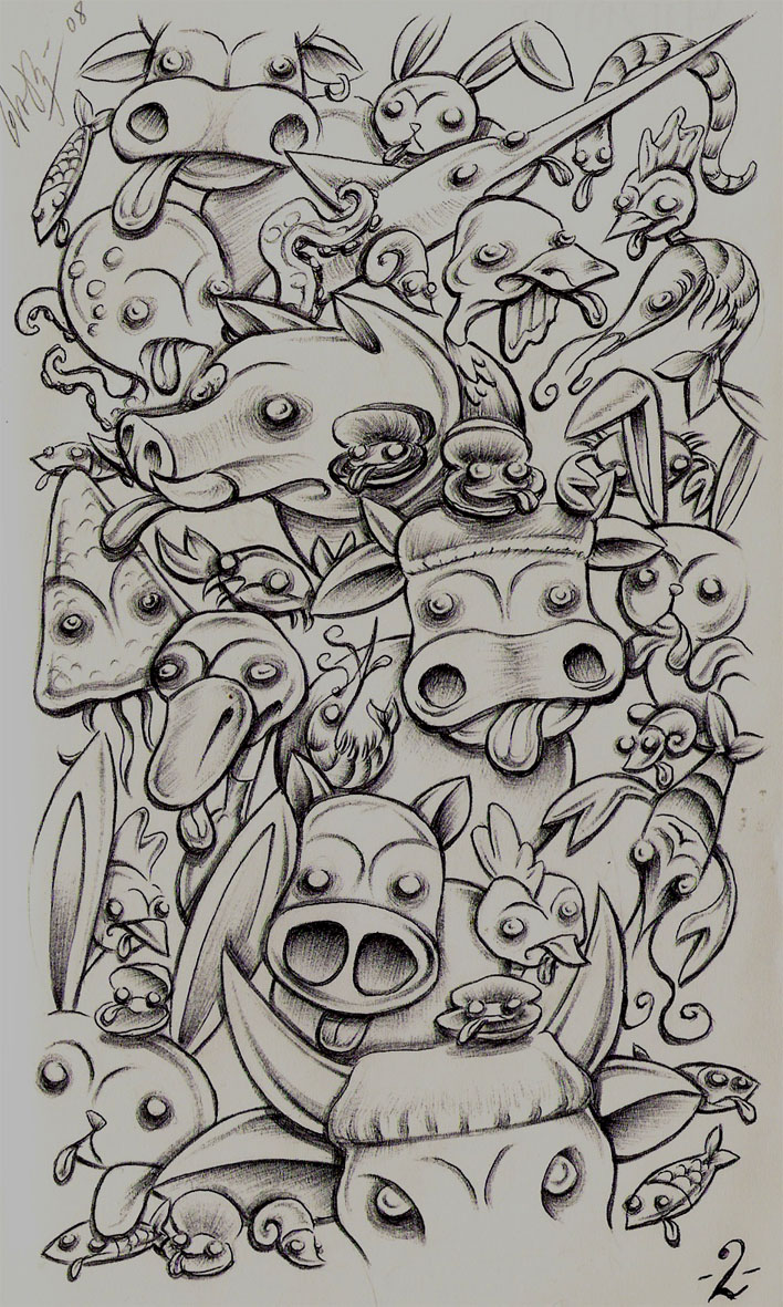 Jar rene, me quedo con el niño/conejo inquietante y el cerdo volador, están brutales. Vaya esto que subo es un poco viejo, de enero de 2010, pero es que me he fijado que solo subí los primeros que hice, así que, sigo por orden cronológico. Espero que les guste.