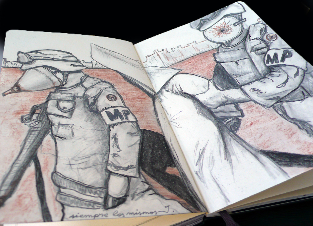 Buenas Crow, pues es justo lo que me pasa a mi con la mosleskine, que el papel es fino y traspasan los dibujos, así que, no sé cómo lo haces con una moleskine. Quizá tengas unas moleskine que salió de una buena remesa con buen papel, si es así ¡agarrala, pero yo, aunque me pasa lo que ha tí (aprieto bastante y si no es buen papel se me traspasan los dibujos) nunca dibujo por una sola cara, no me gusta malgastar papel, que, por el han muerto árboles, me alegra que te guste mi trabajo. Voy a aprovechar y colgar nuevos.hechos, en la moleskine hasta que la termine, cuestión de principios. Aunque ya tengo una libreta nueva de buen papel, que espera su estreno. Por cierto Crow, si tienes ganas de ver el de the freelance a color aquí tienes el enlace.El problema es que por x o por y, siempre tiendo a afincar mucho cuando escribo o dibujo, por lo que muchas veces encuentro que dibujos que había hecho previamente, quedan marcados por nuevos, aunque he recurrido a usar sólo un lado del papel o a colocar una hoja protectora de por medio, igualmente se me han arruinado algunos dibujos. No es del todo grave, pero haber probado el tipo de papel de la moleskine, me agradó mucho el resultado, puedo dibujar en todas las hojas sin traspasar las anteriores.