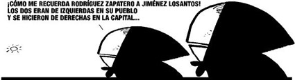 Lo de la boina de Madrid, entre otras localidades, es noticia de actualidad, la verdad esta pahí pafuera, miren otros ombligos, no sean provincianos.Tío, Fiz, tú problema es que sabes demasiado de política yo no puedo patear el trasero de los jefes del FMI pero el de Zapatero sí intento ser realista le sacudiré a zapatero, igual que en sus primeras elecciones pateé el de Aznar en el de Rajoy soy muy básico, Fiz la poesía para los poetas y te digo más, en el bareto de Athletic, donde tomo café, el barrio obrero de Usera, en Madrid, piensan casi todos igual y si les llamas fachas te rompen la cara para mí que son malos tiempos para la estética política.