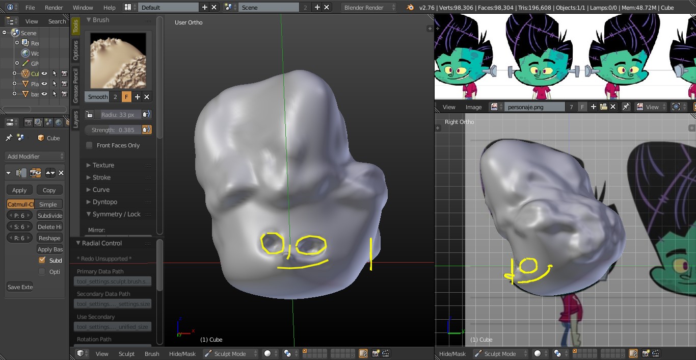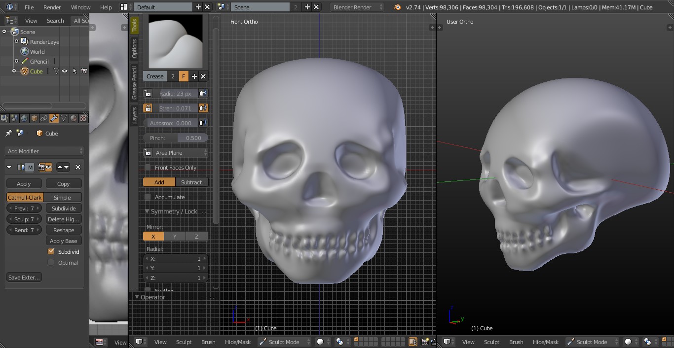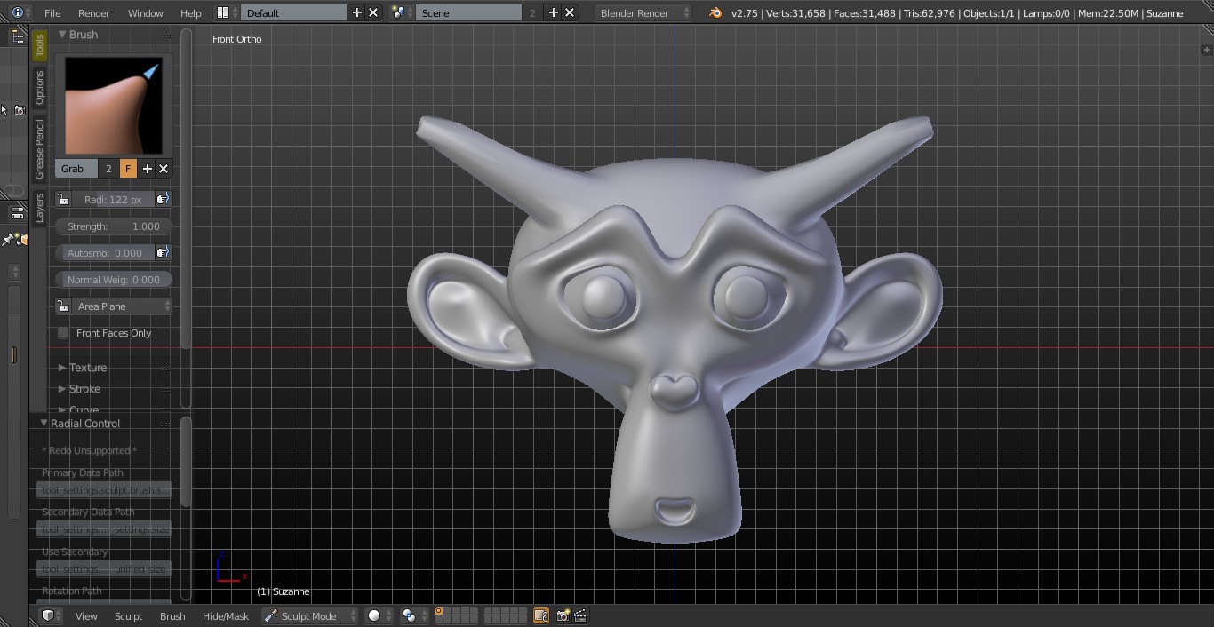 Estaba practicando un poco Sculpt con la calavera qué me deje en uno de estos retos (ahora no me acuerdo el número; el de la nevera espacial). Supongo que calaveras hay muchas y esta podría ir por buen camino.