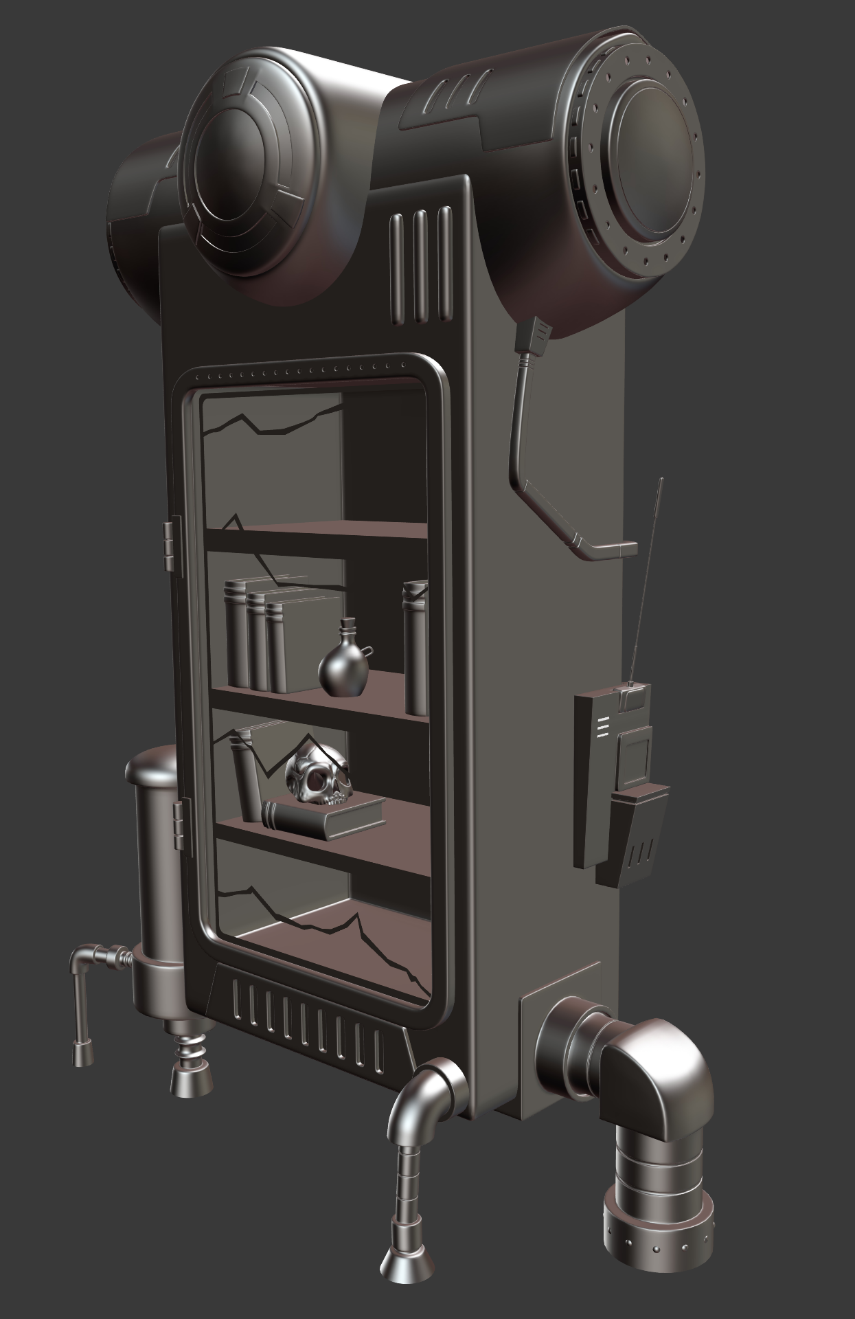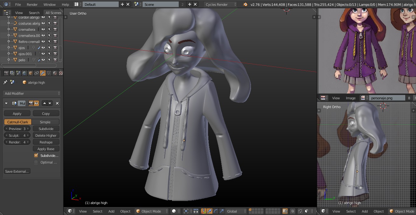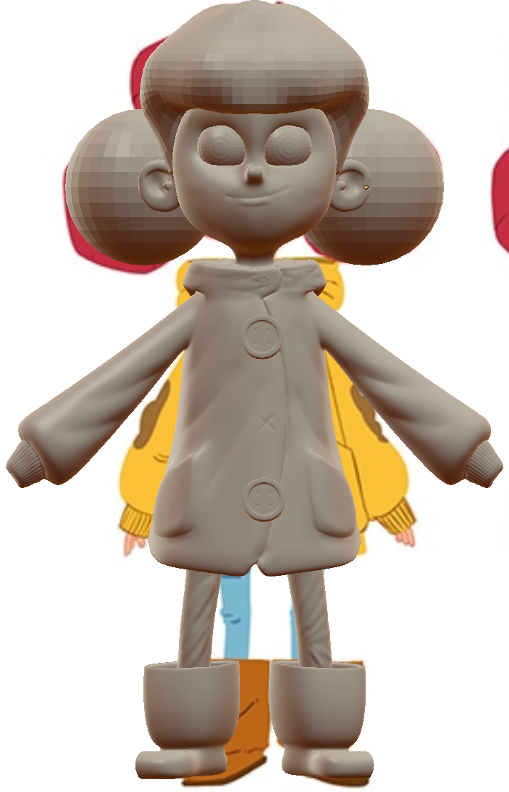 Ya he terminado el modelado básico. Le pondría con Sculpt los agujeros de los costuras del abrigo y luego bakearlo. Saludos.